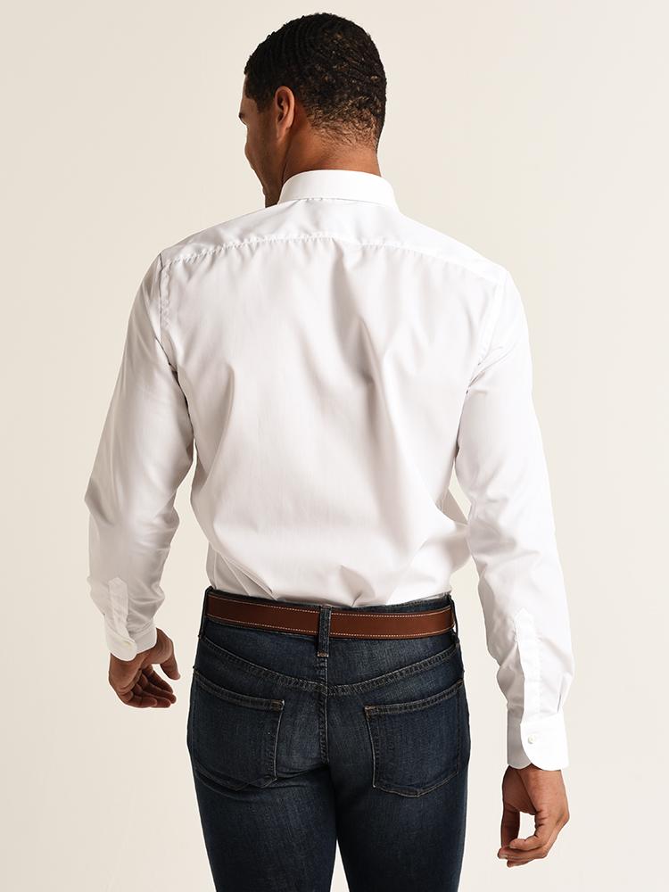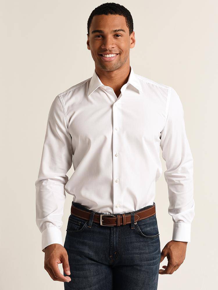 - Button-down point collar. Single-button rounded barrel cuffs. Shoulder yoke at back. Shirttail hem reinforced with side-seam gussets.