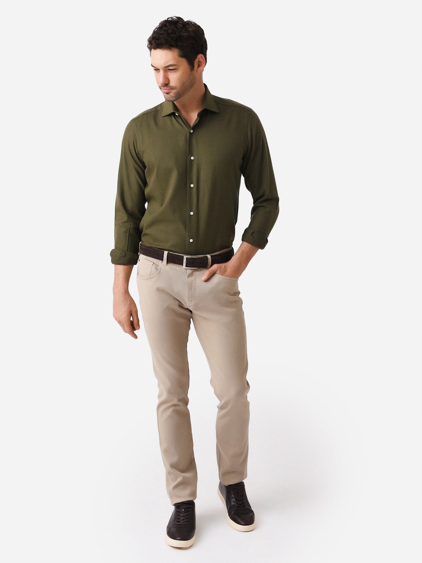 Lightweight, woven dress shirt.