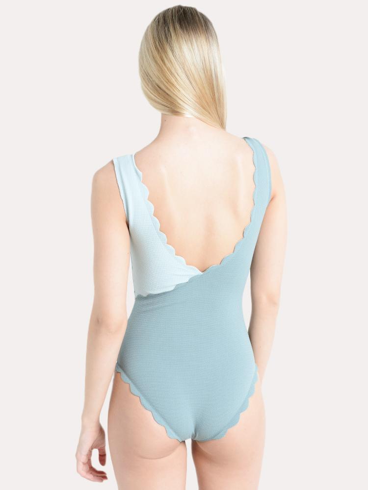 A cool toned palette is artfully adorned with the signature Marysia scalloped edges, making the Marysia Women's Canyon Point Mailot a charming selection for your beach or pool wear.