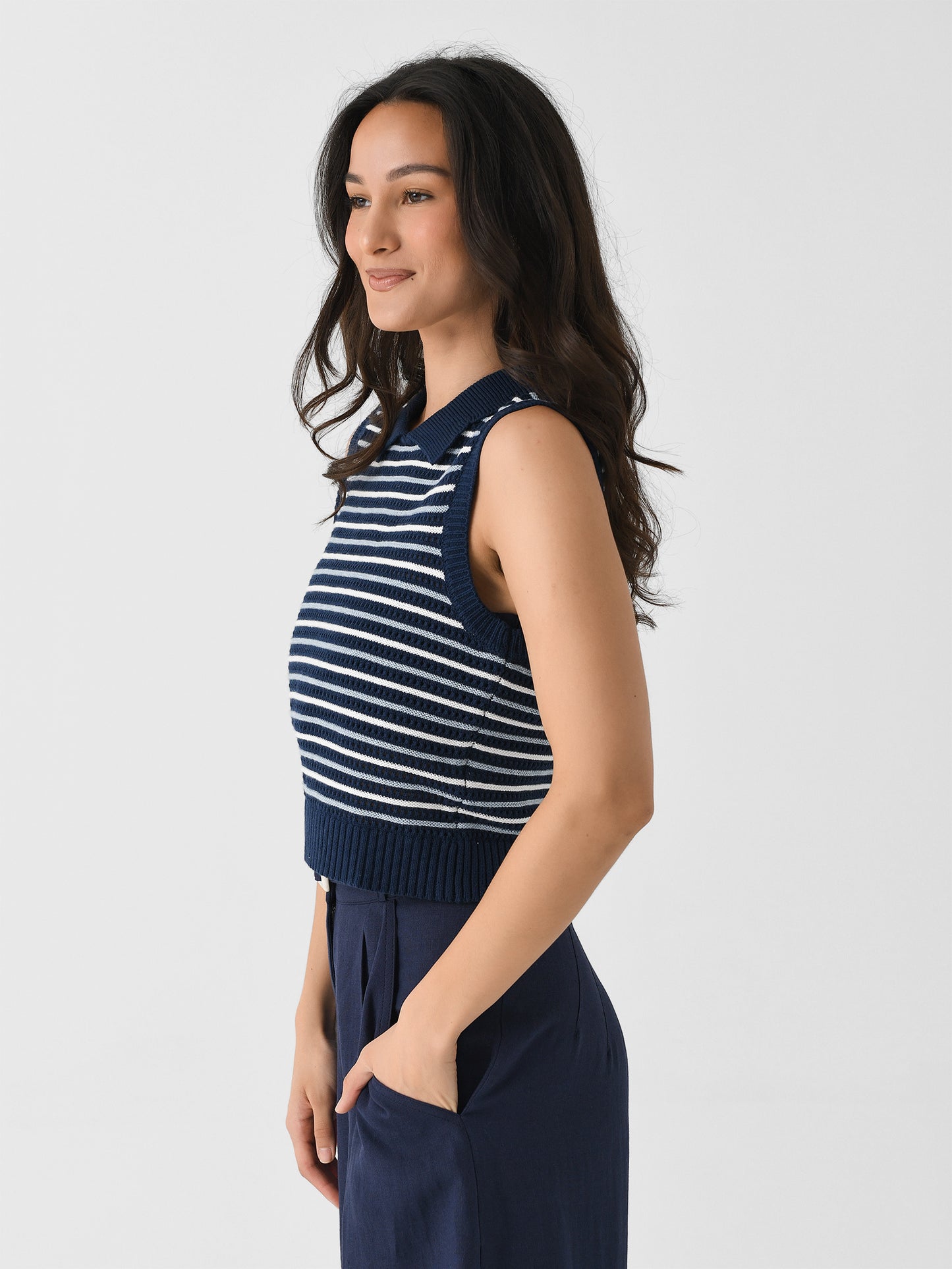 Matthew Bruch Women's Striped Mesh Collard Tank
