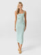 A mid-length cover-up dress made from premium swim fabric and finished with 3D floral appliqué details.