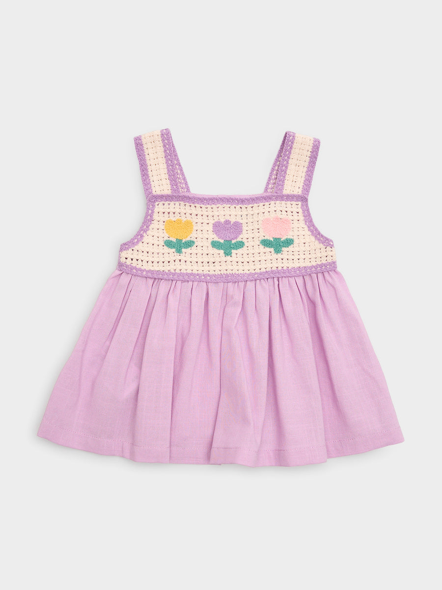 Square Neckline Sleeveless Crochet Yoke Gathered Skirt 51% Cotton, 43% Viscose, 6% Acrylic Classic Fit