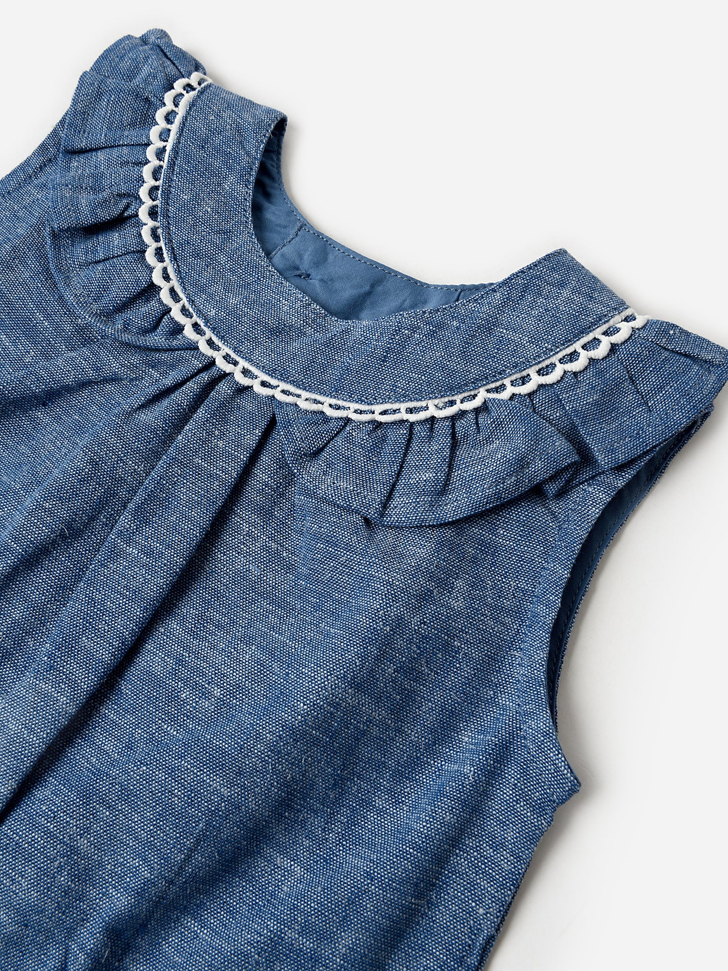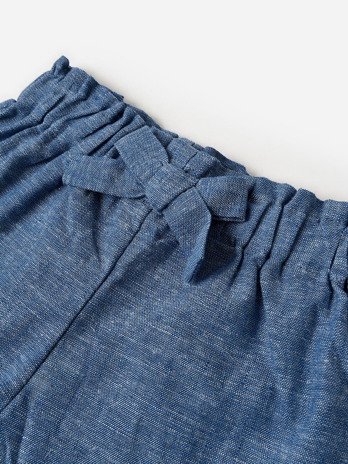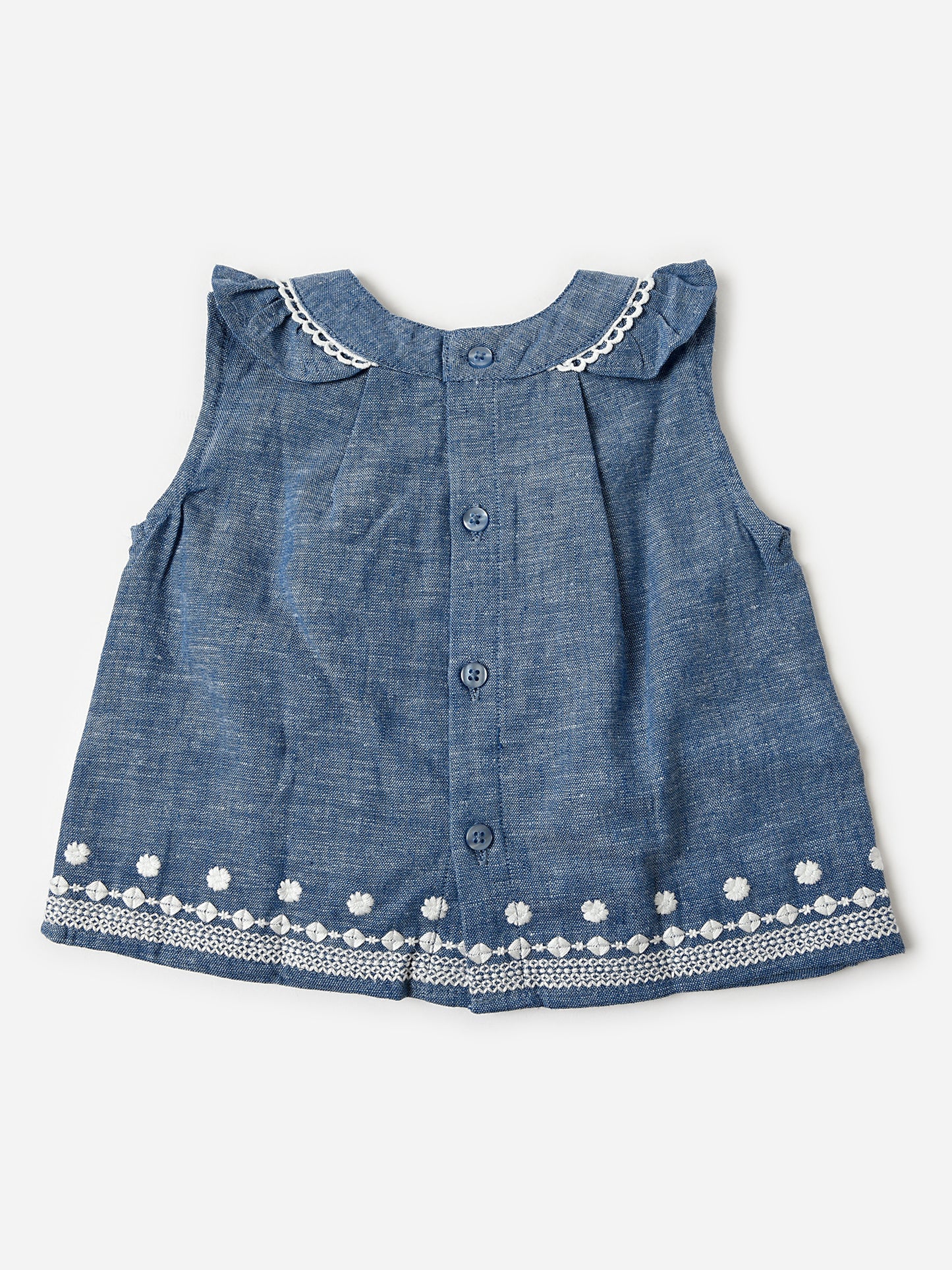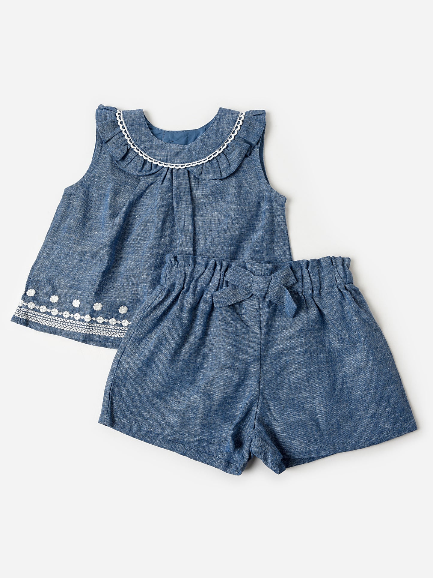 A matching top and short set made from lightweight linen and cotton with delicate contrast embroidery.