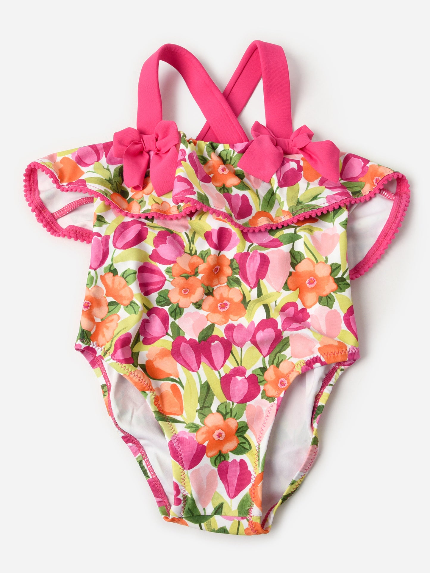 Baby Girls' Floral Printed One-Piece Swimsuit