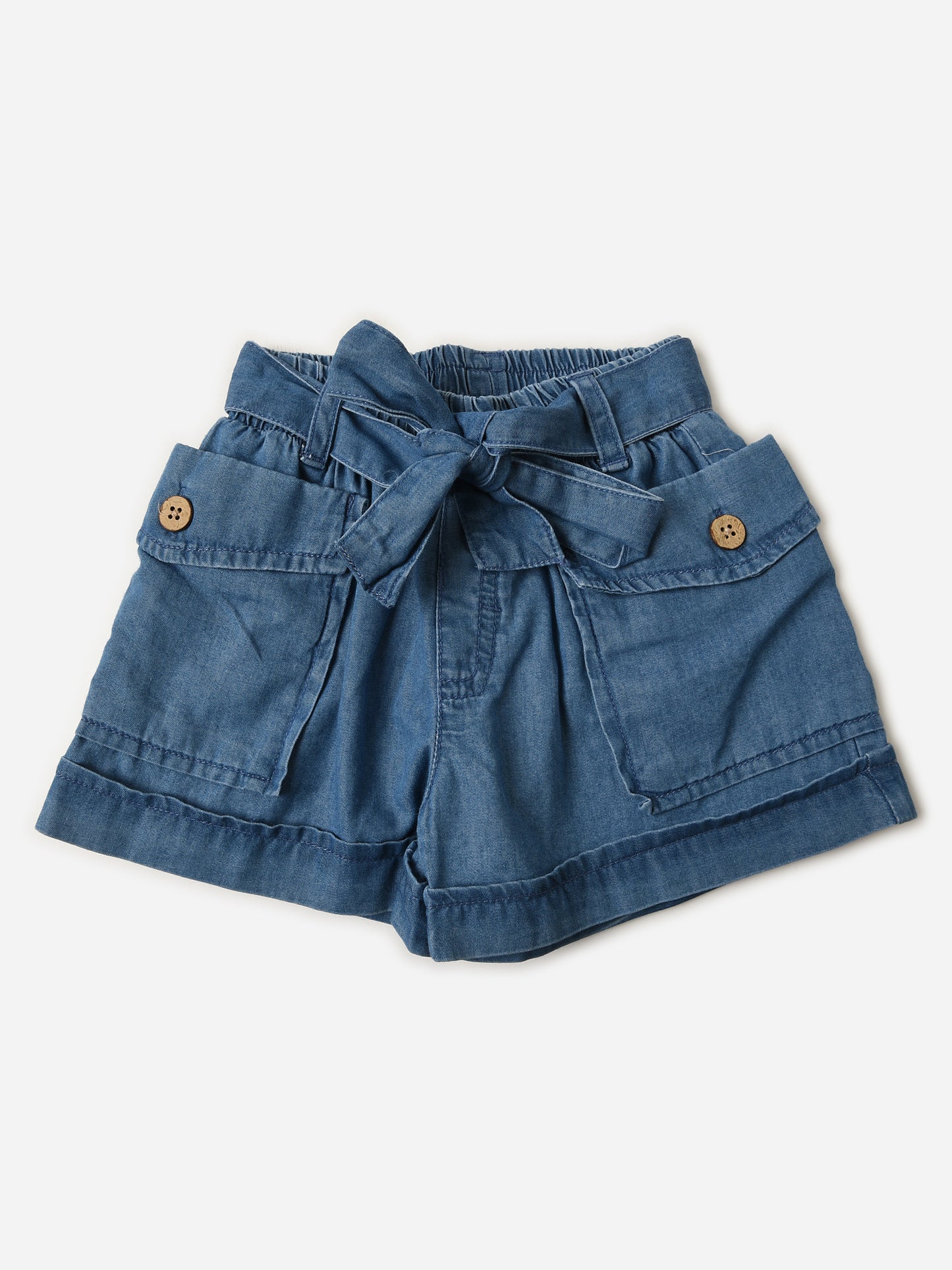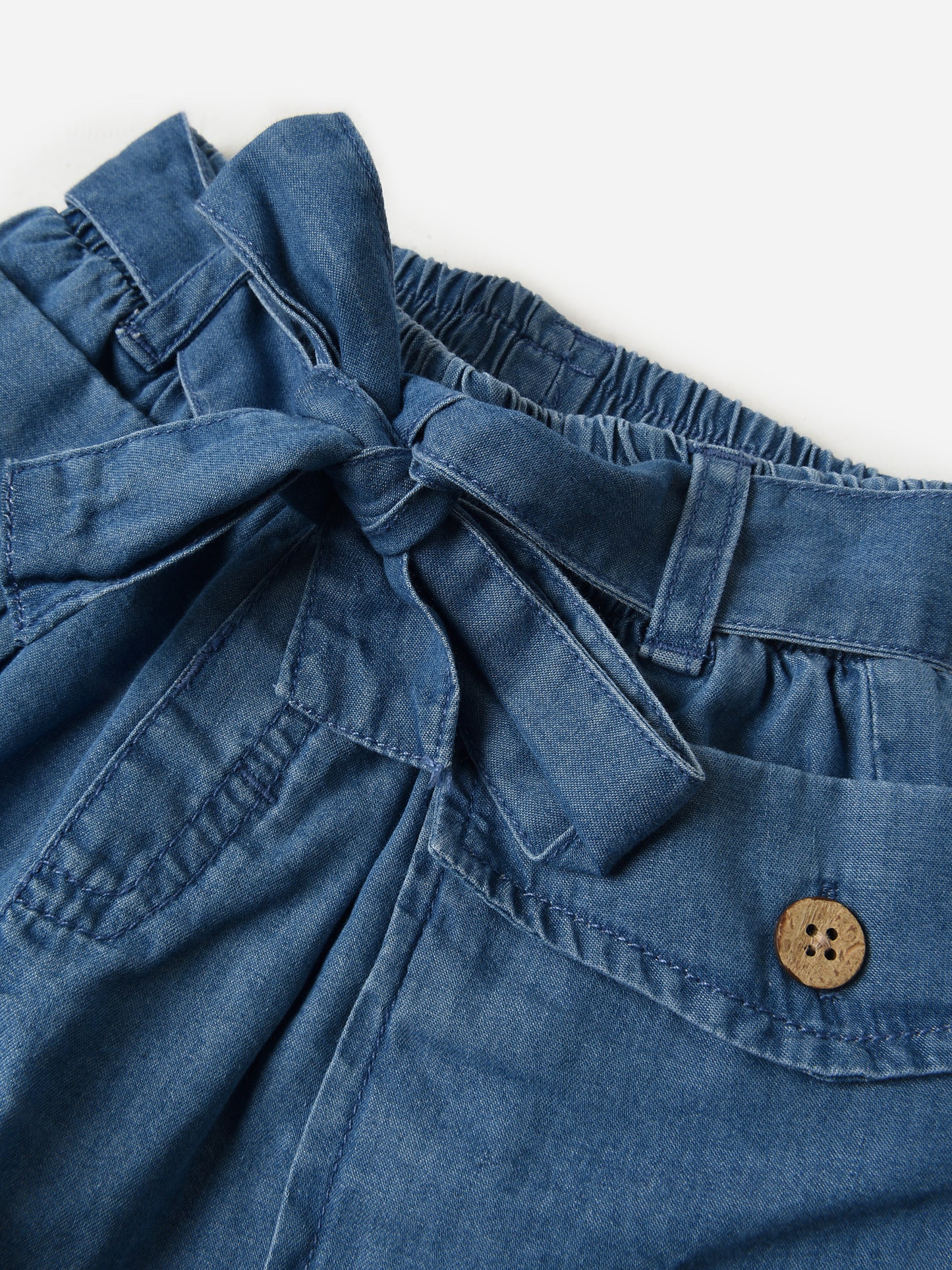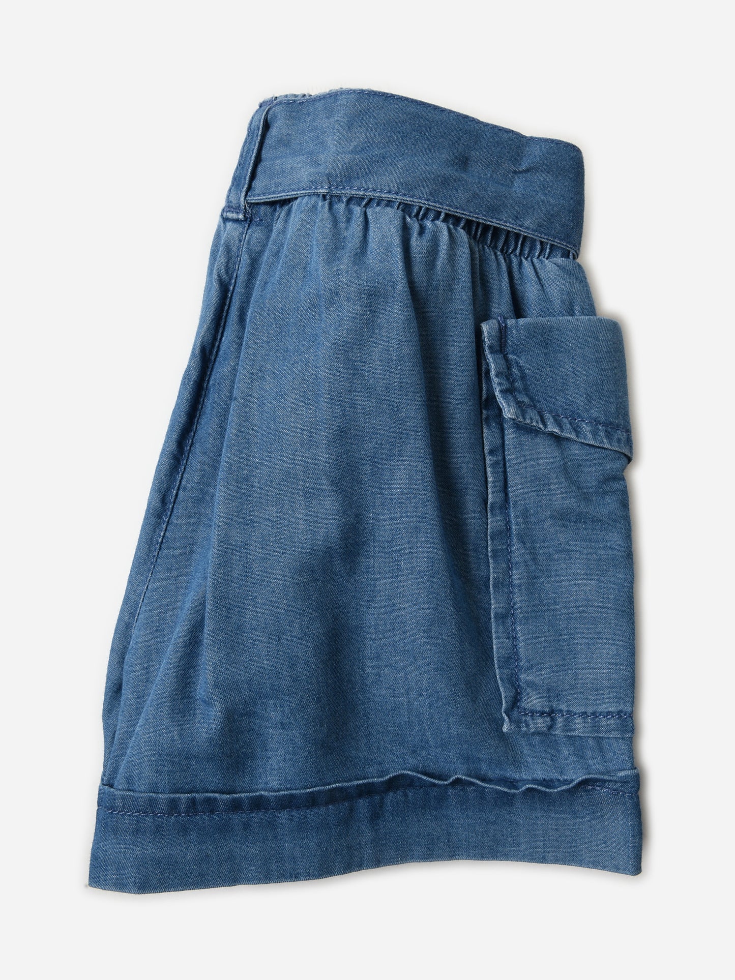 A lightweight pull-on short made from cotton-lyocell with button pockets and a self-tie belt.
