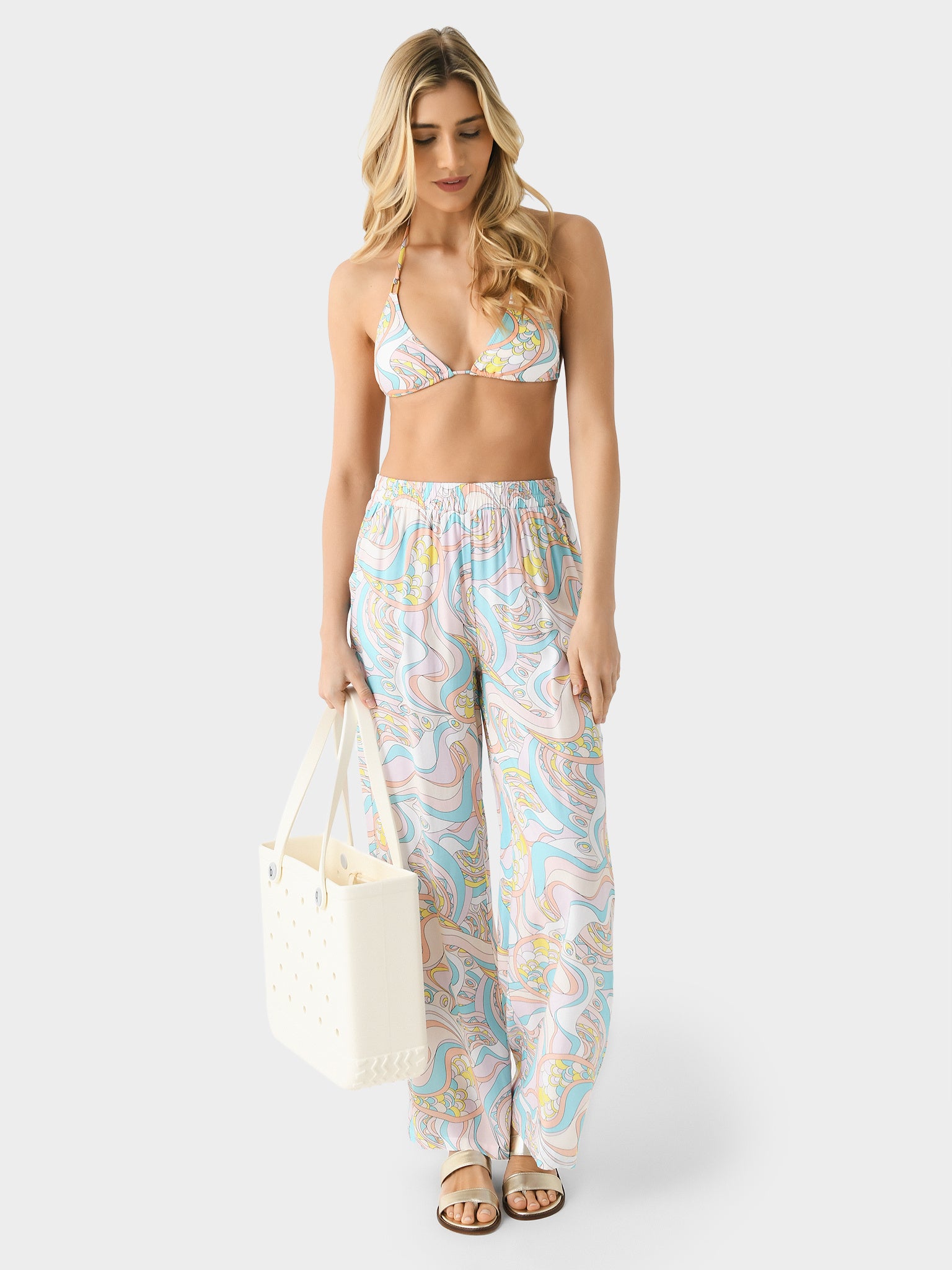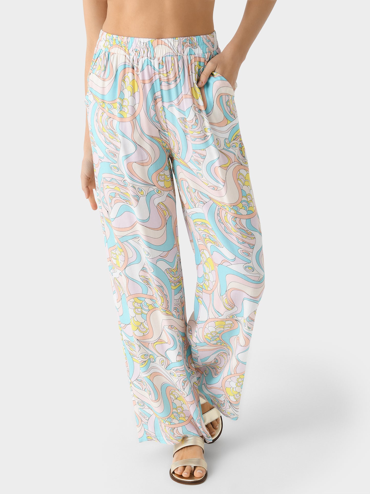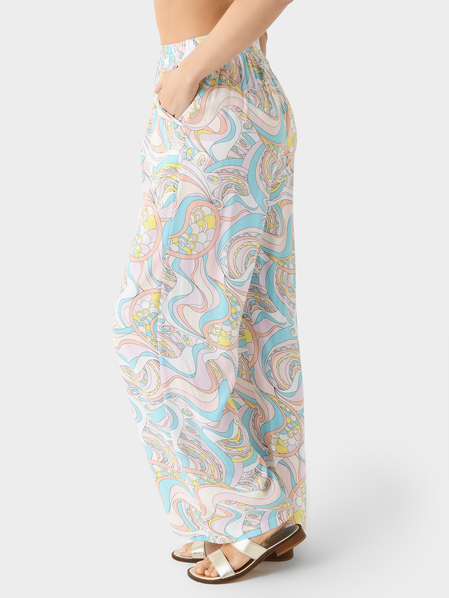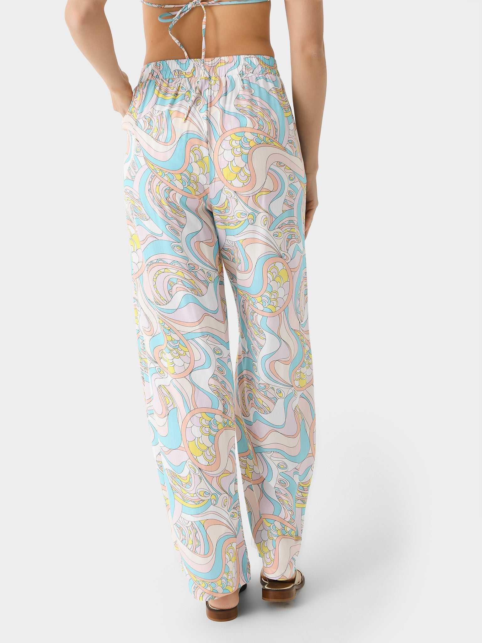 A wide-leg cover-up pant designed with a 70s-inspired paisley print.