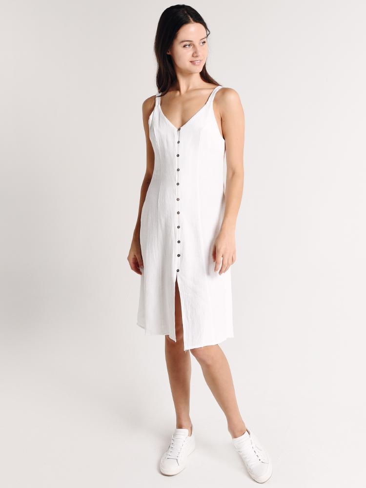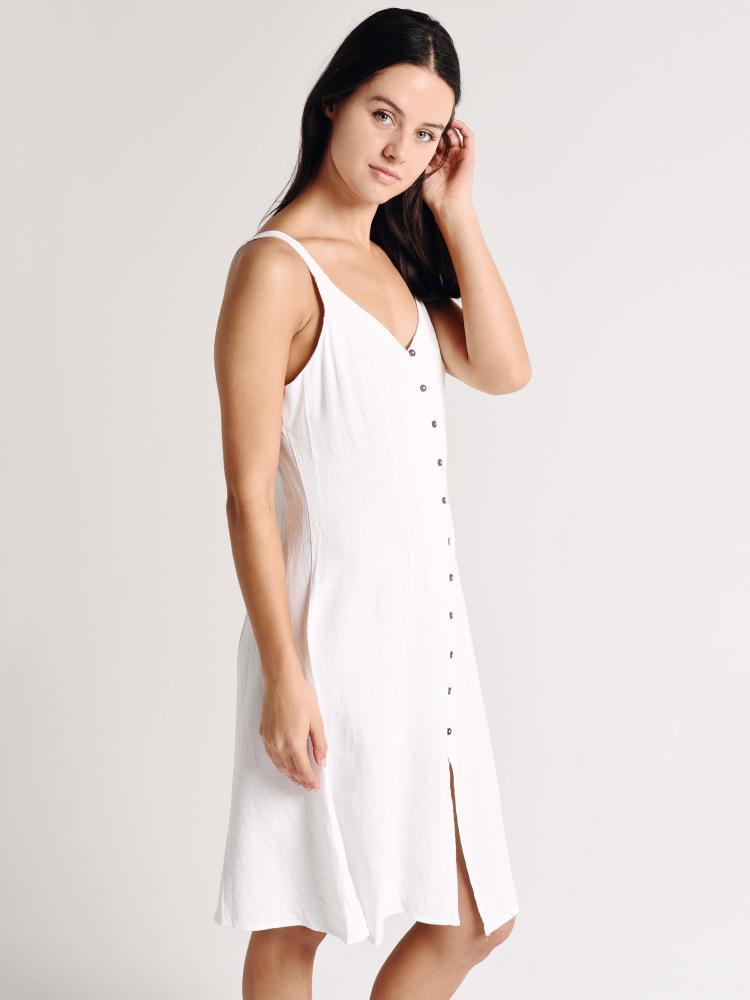The Melissa Woven Button Midi Dress is perfect for a warm weather escape.