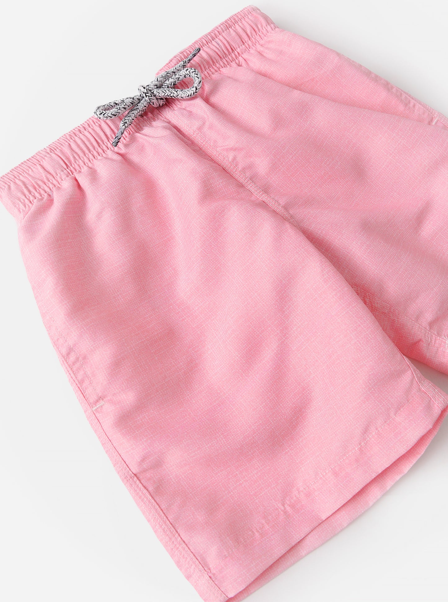 Swim trunk made from a quick-drying linen polyester with self-draining on seam pockets.