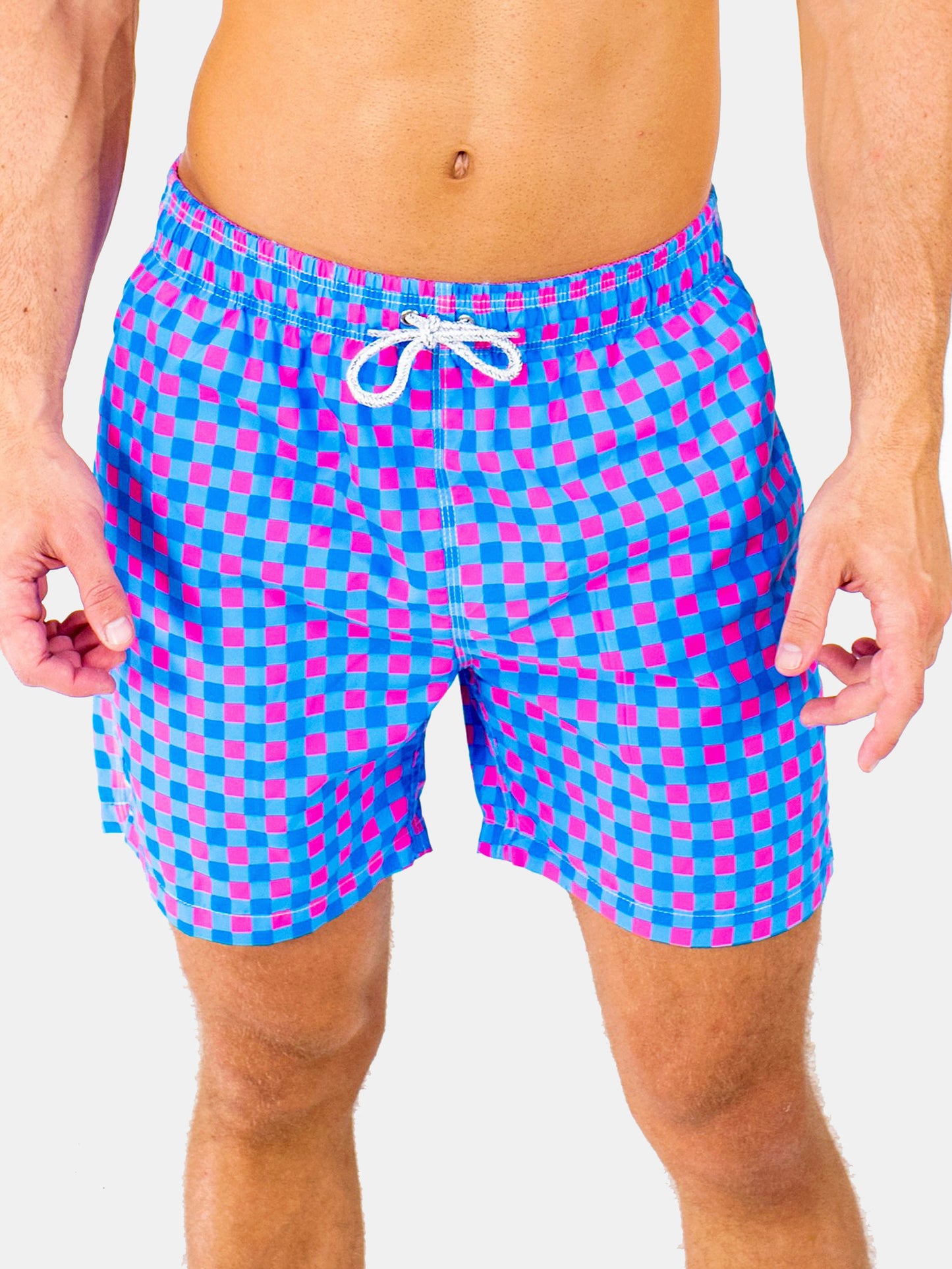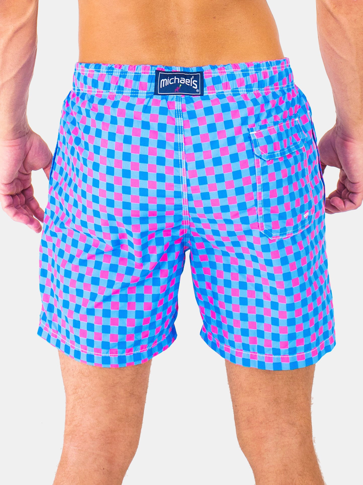 Hit the pool in the super-cool Michael's Swimwear Men's Classic Gingham Swim Trunk.