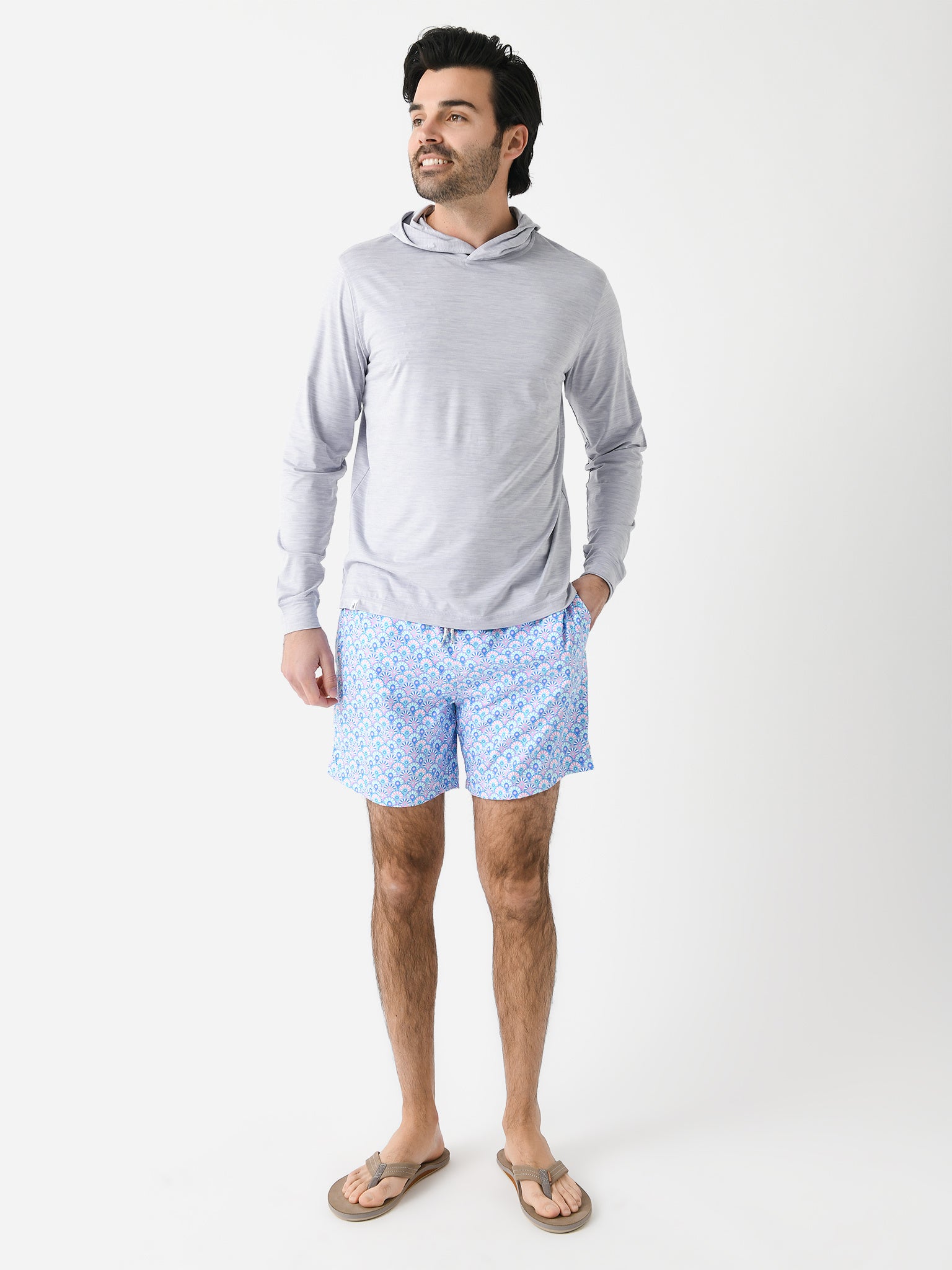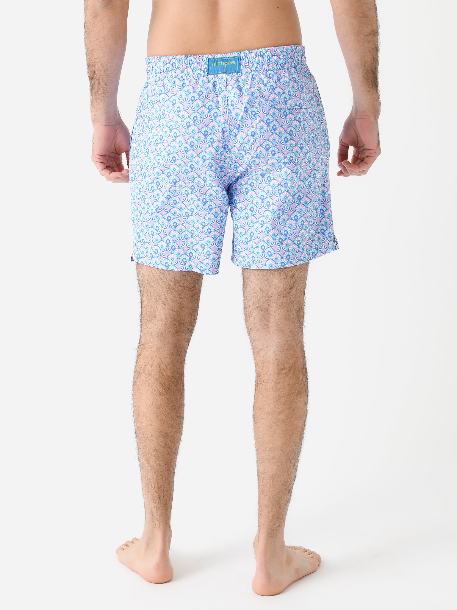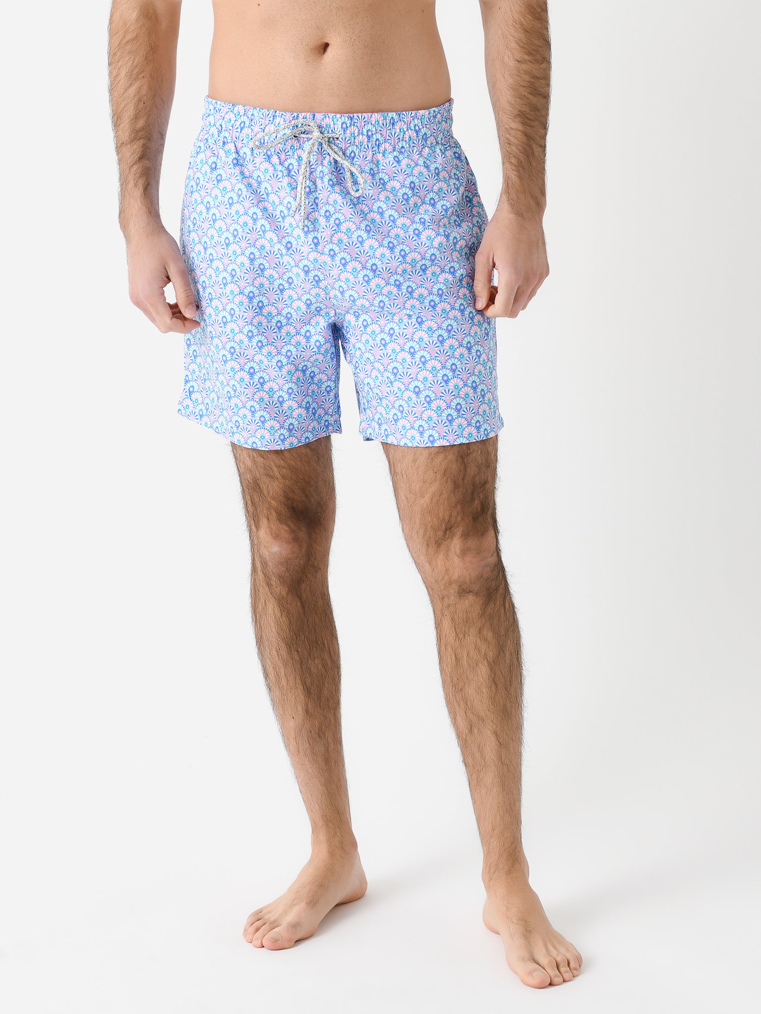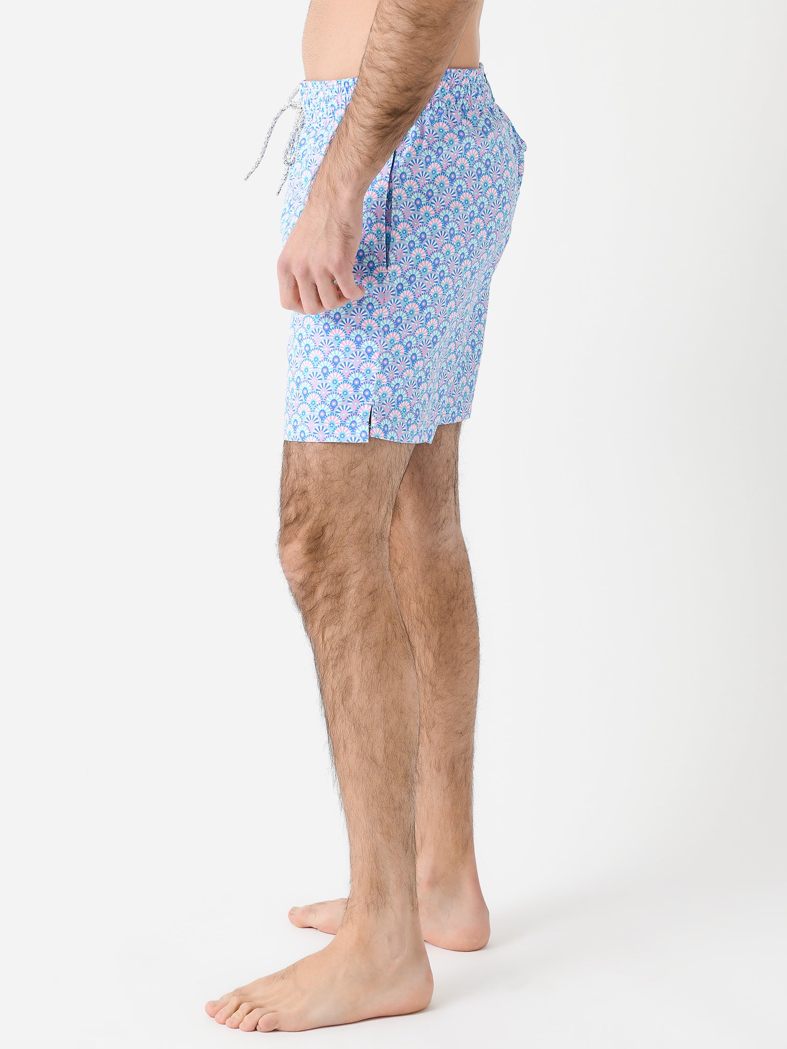 Soft-finish swim trunk made from quick-drying material with a colorful print.