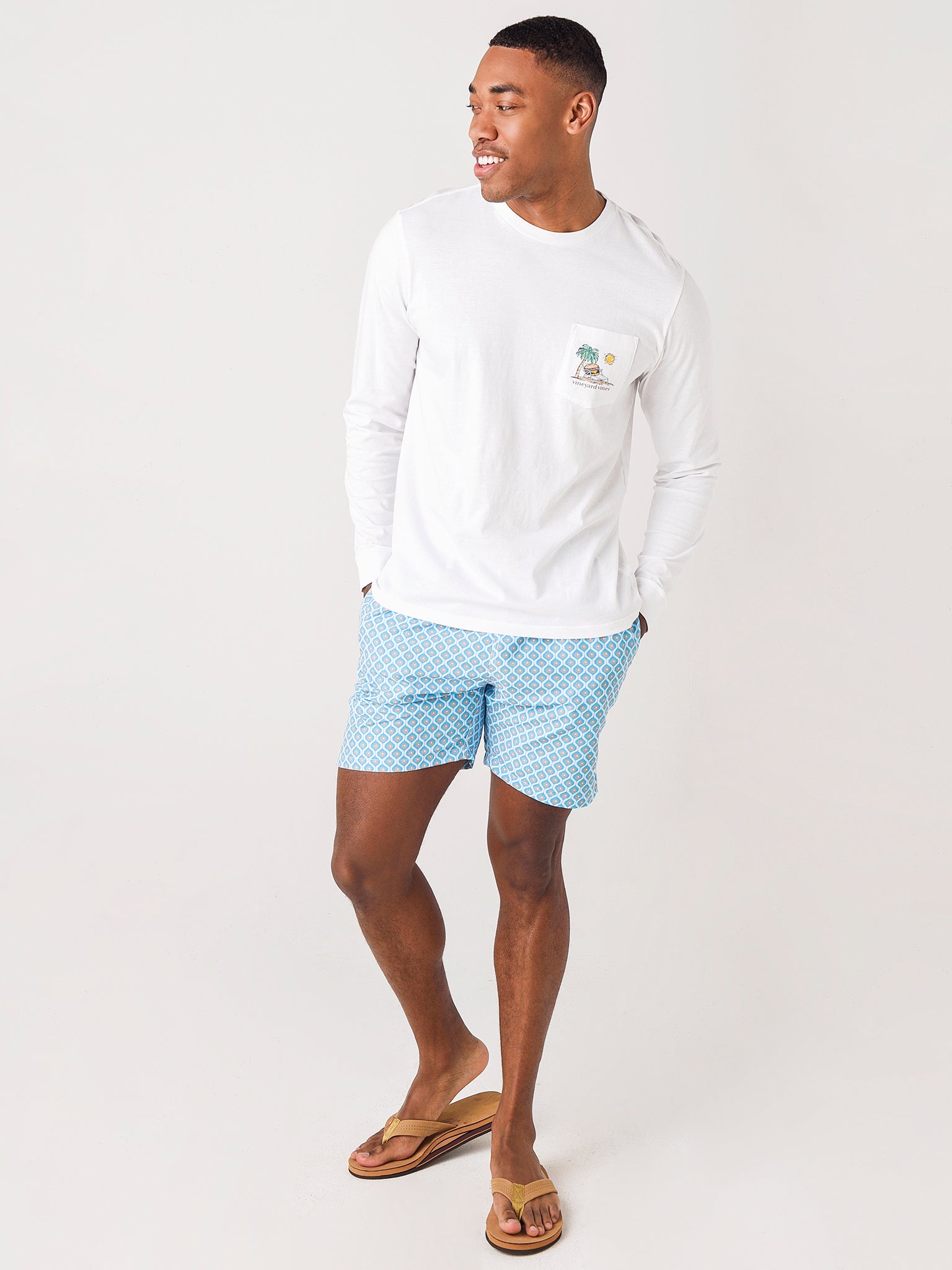 The Michaels Swimwear Men's Geo Swim Trunk delivers a geo print perfect to brighten up any beach day.