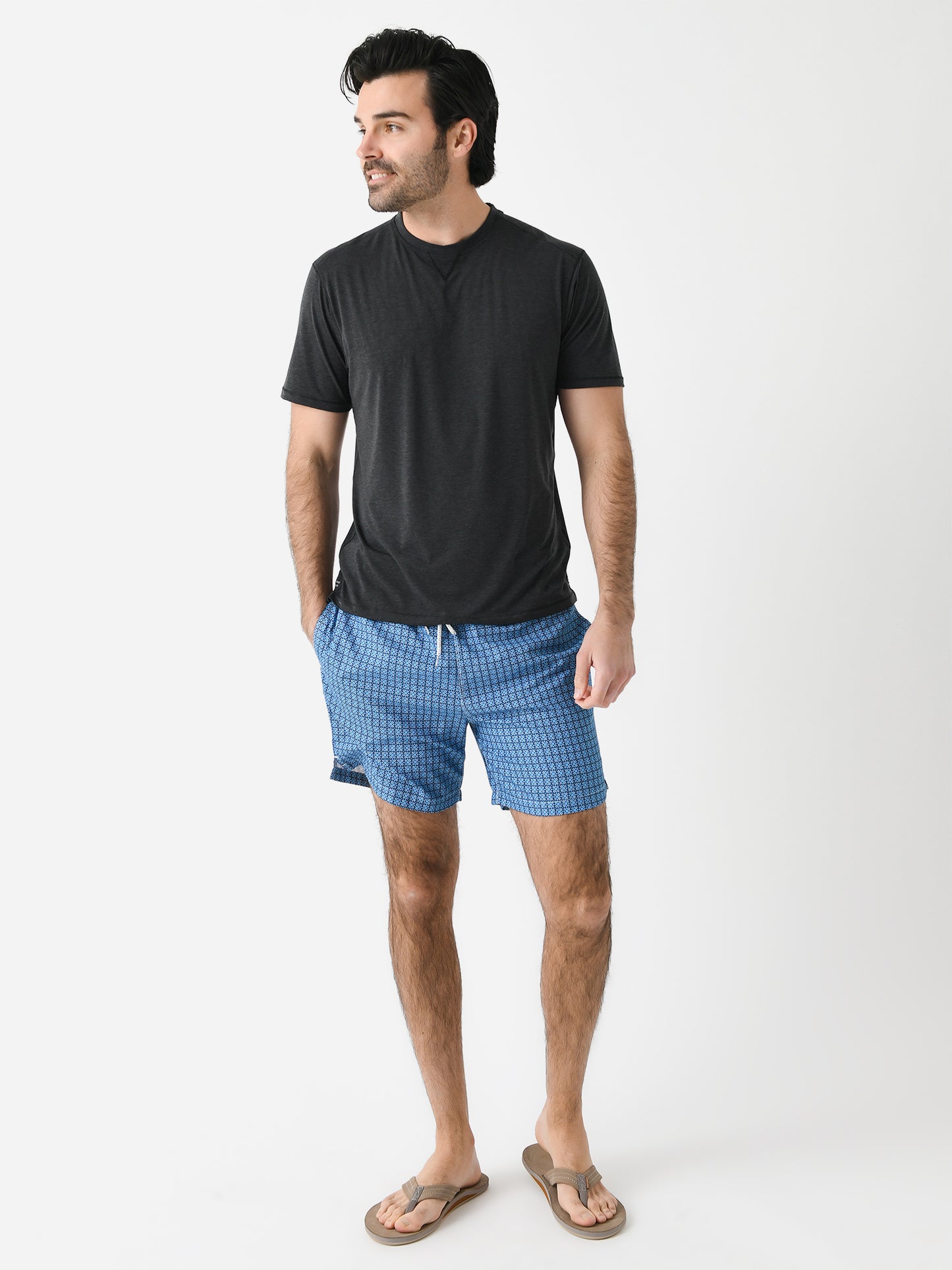 Quick drying, lined swim trunks with self-draining pockets and a colorful print.