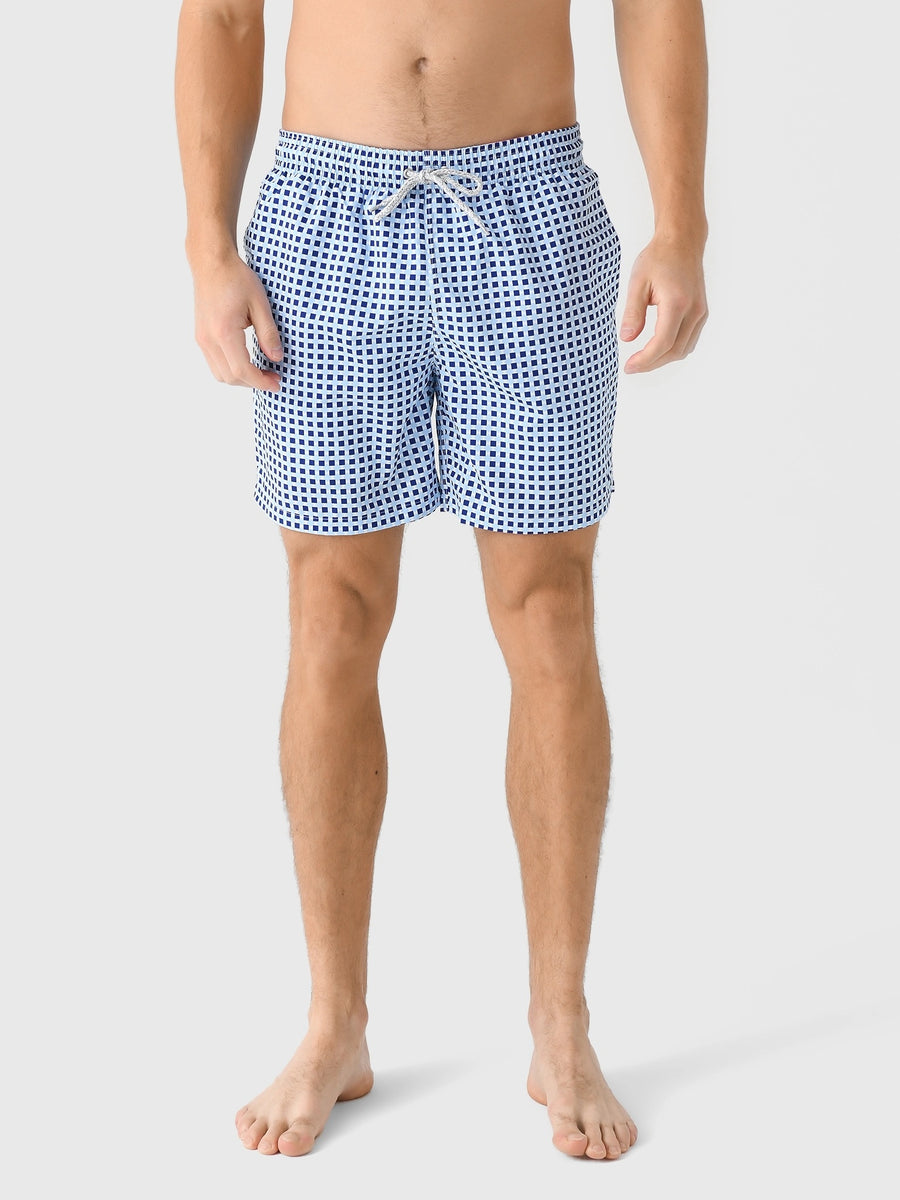This checkered swim trunk delivers a clean, iconic look. Whether you're at the beach or the resort, this classic print ensures a polished aesthetic that never goes out of style.