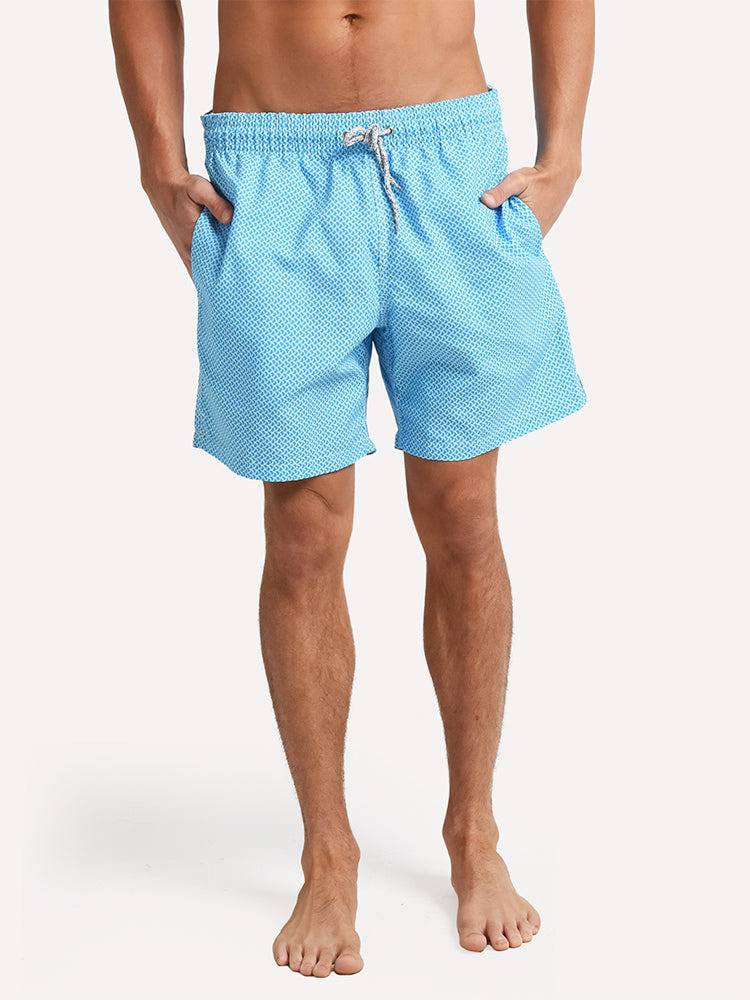 The Michaels Swimwear Wave Print Swim Trunk features a digitally printed design on a quick-dry polyester fabric.