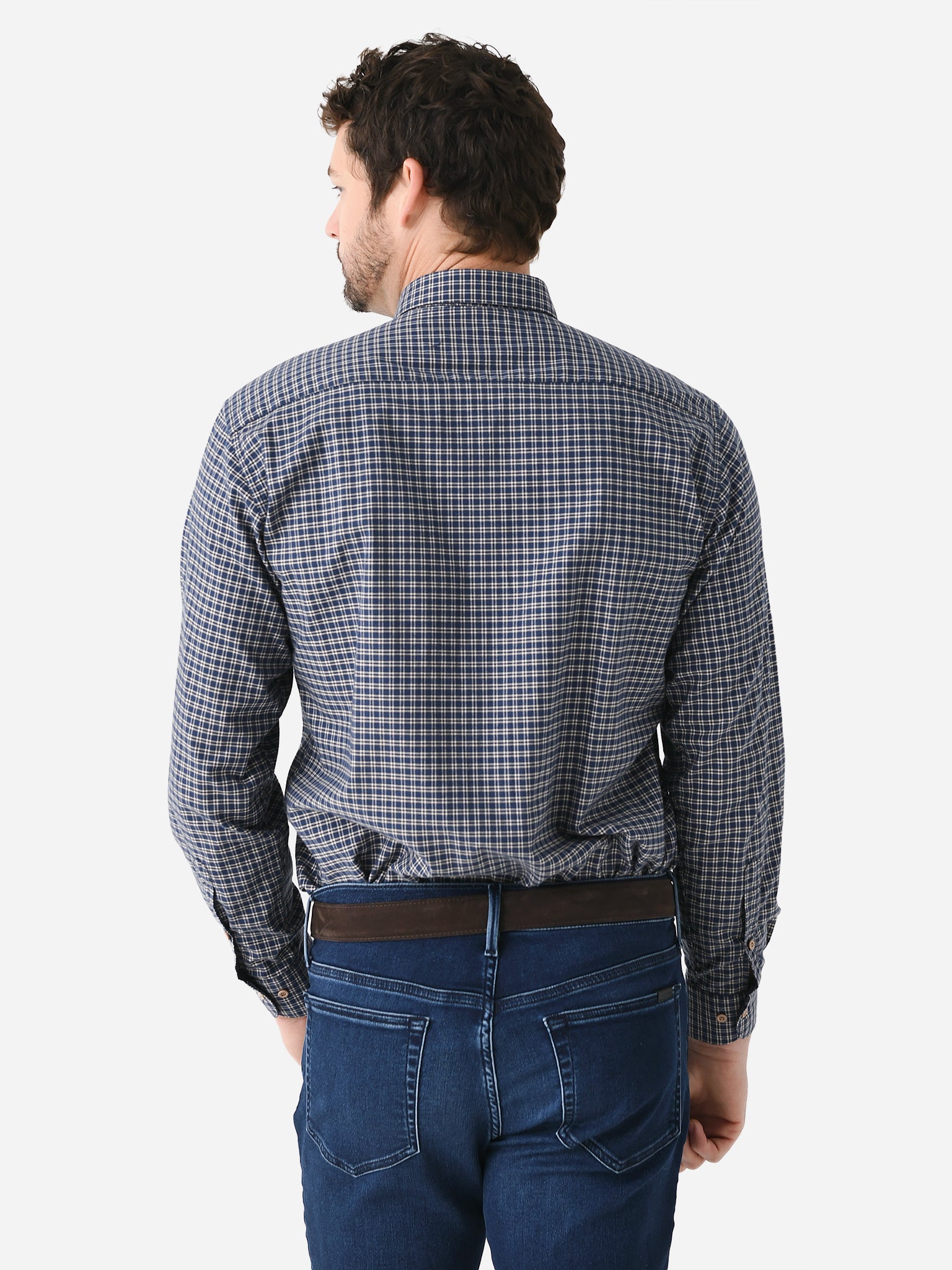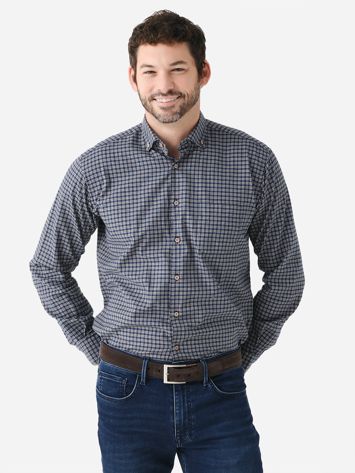 A soft, woven button-down shirt with a two-tone plaid print.