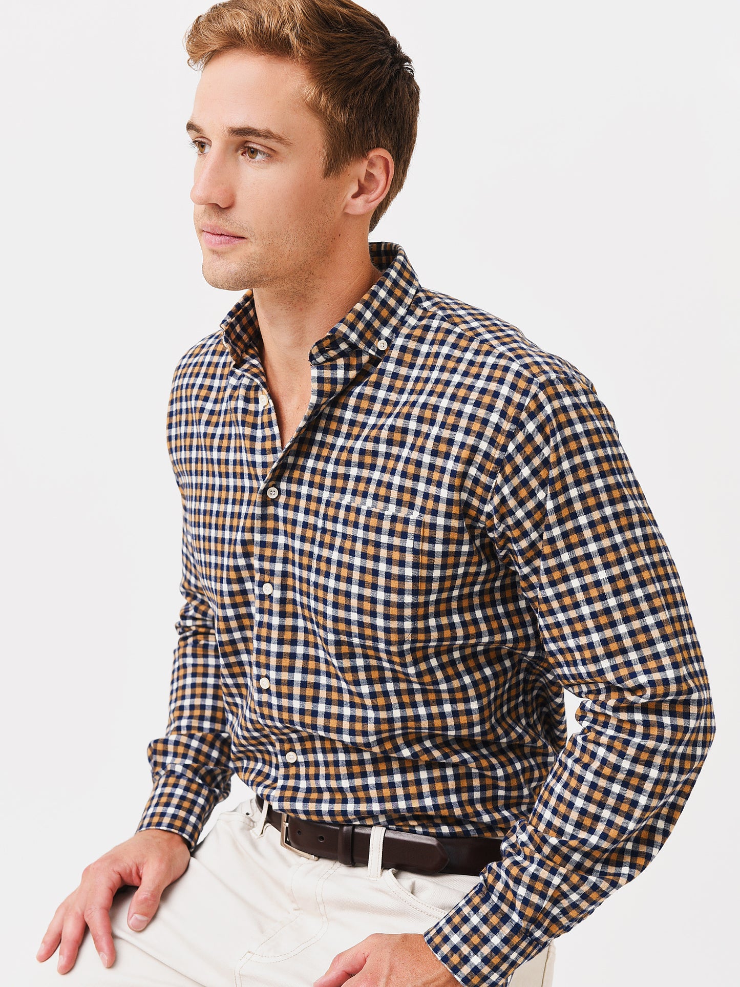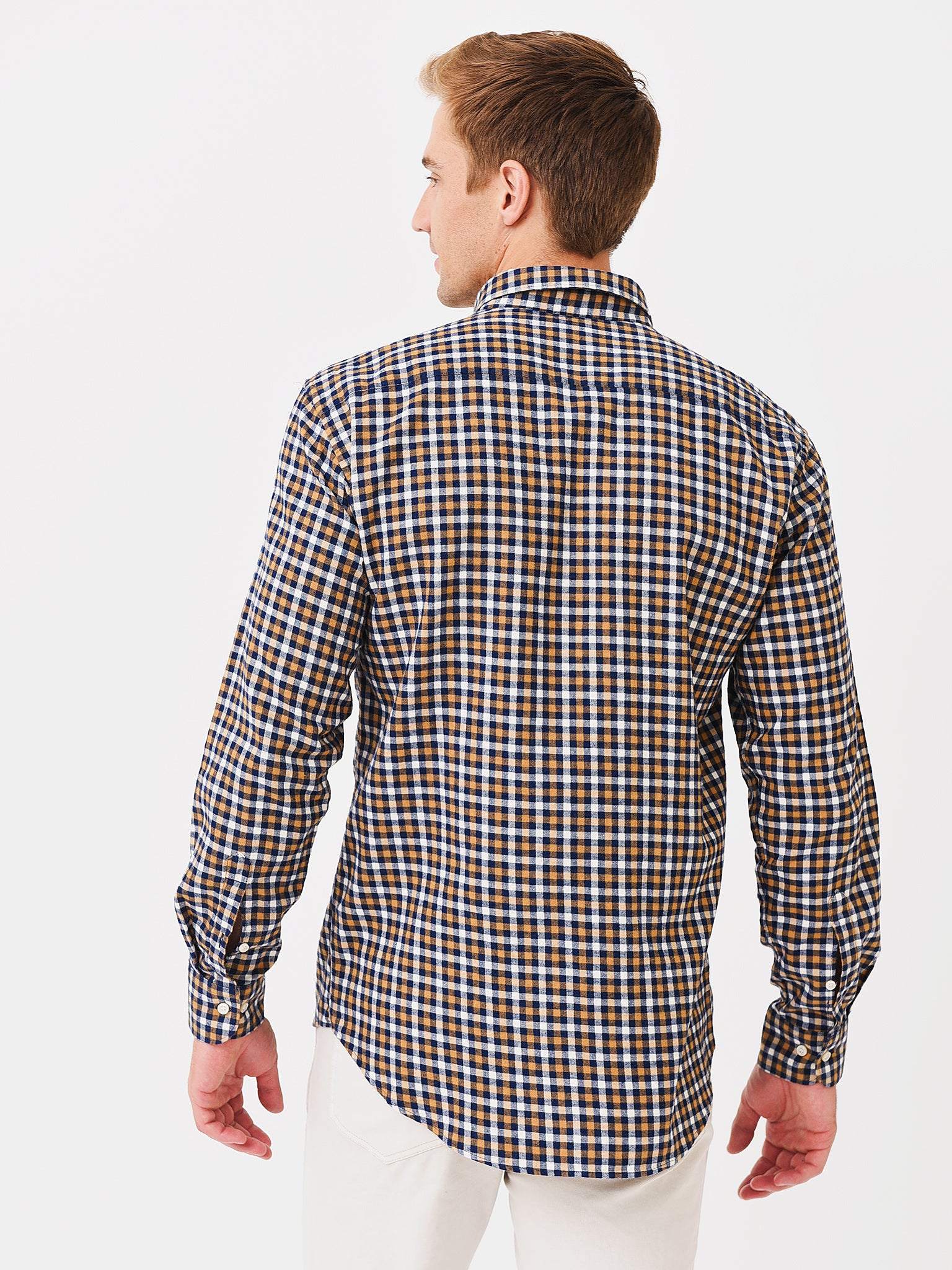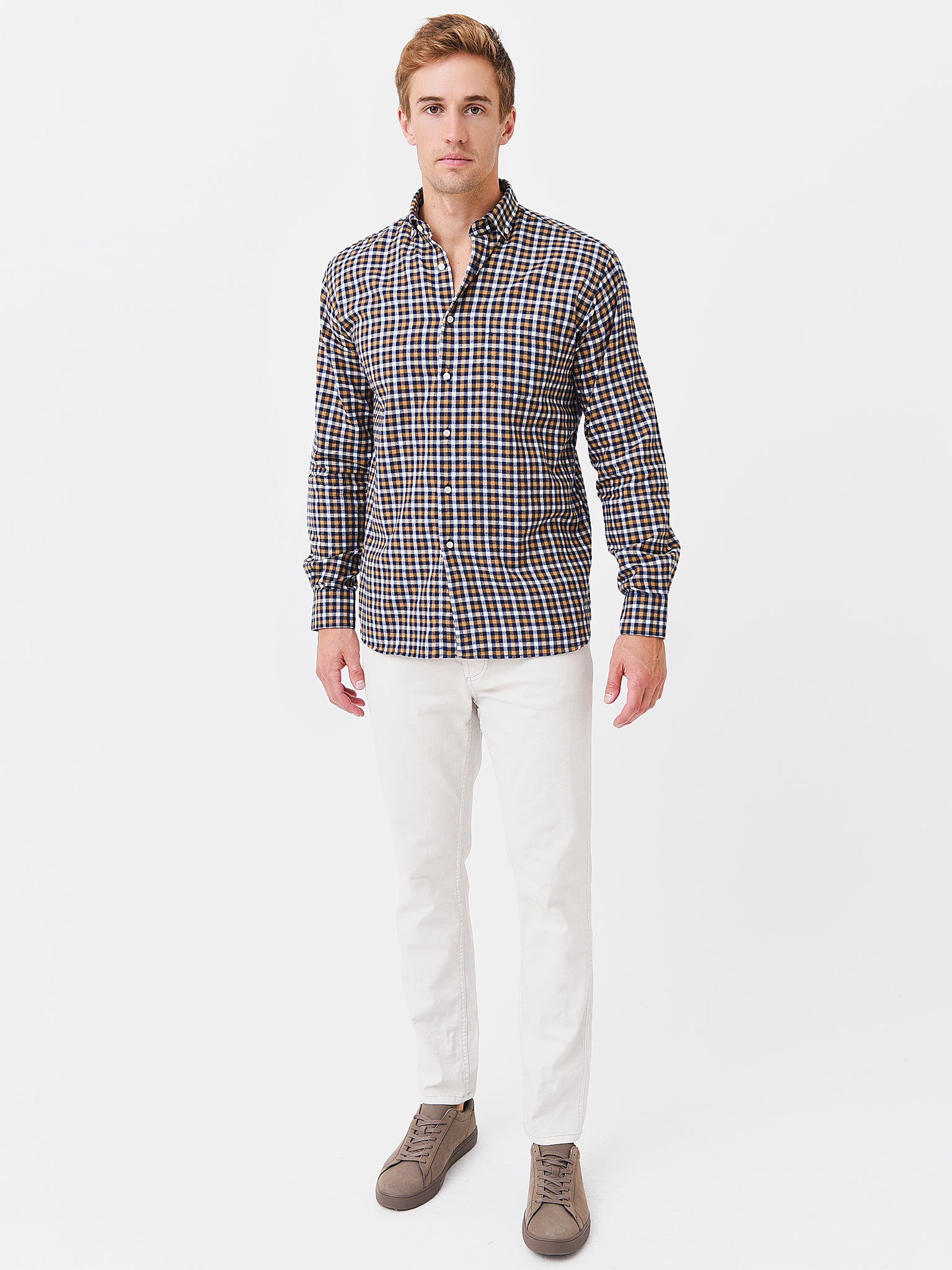 Soft cotton button-down shirt with a button-down collar.