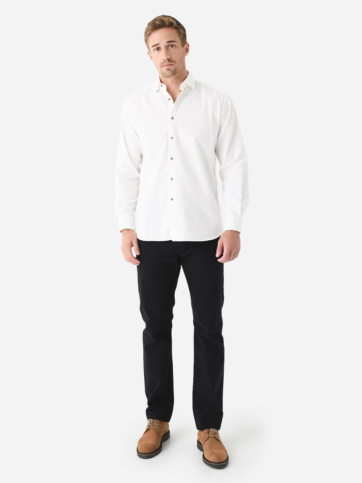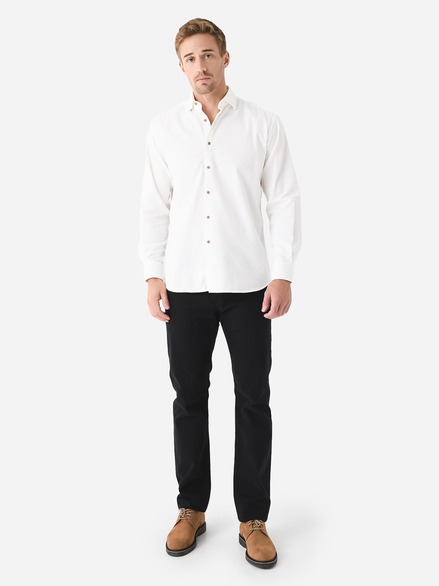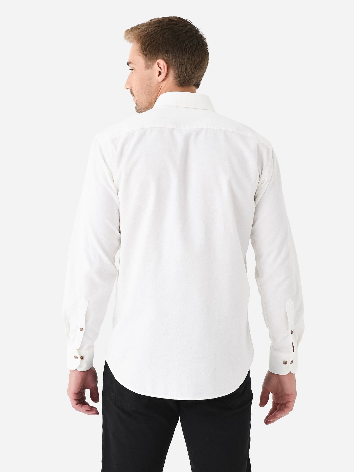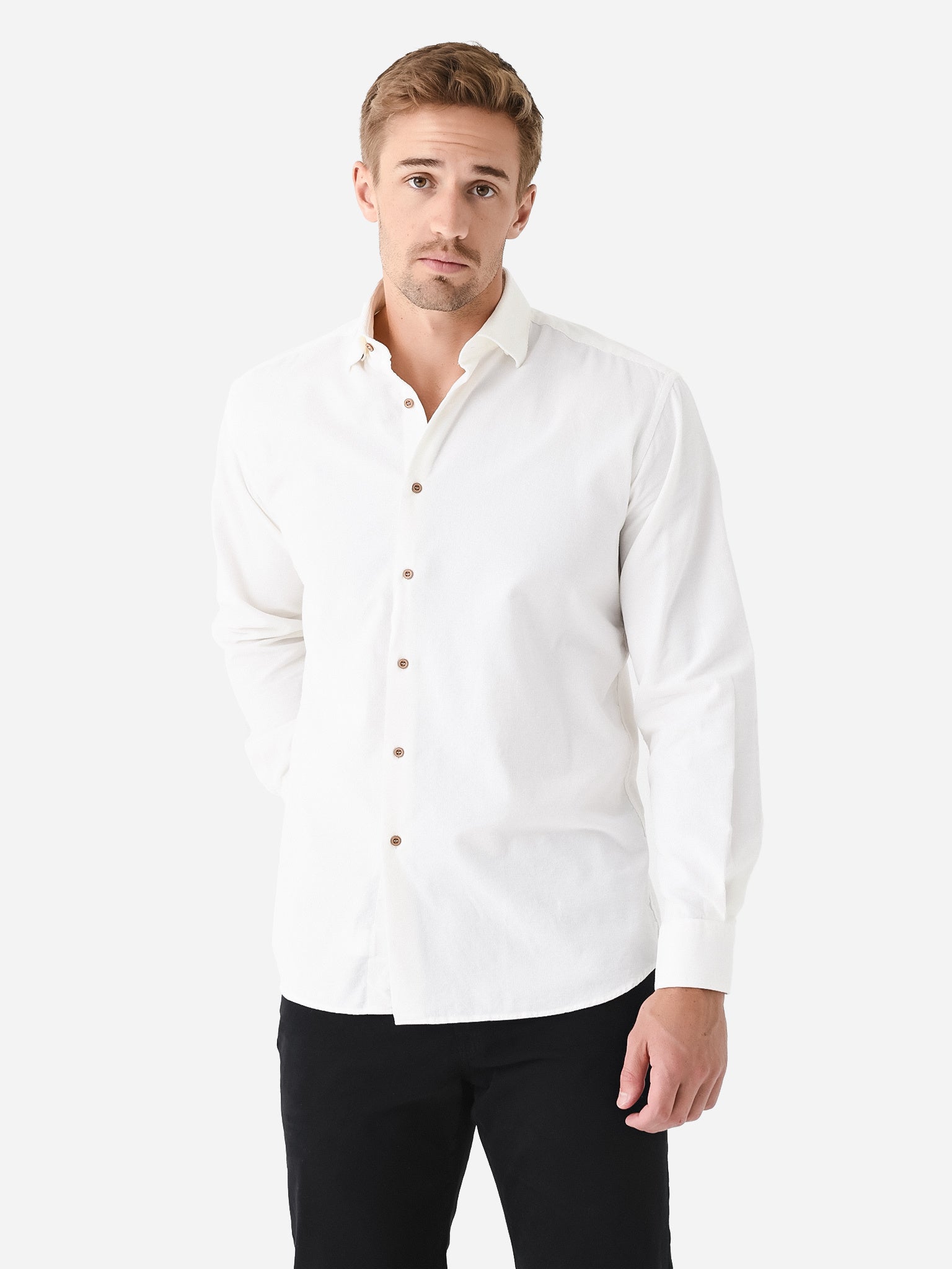 Casual button-down shirt made from soft corduroy cotton in a neutral tone.