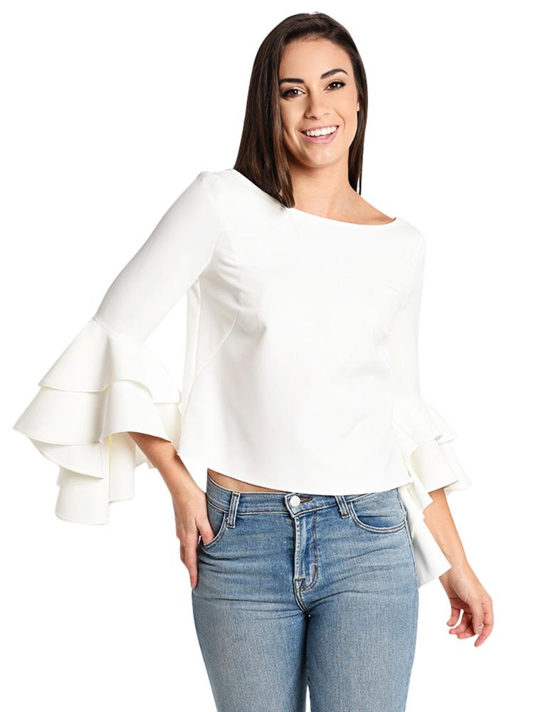 The Milly Annie Top is right on trend with belled ruffle sleeves.