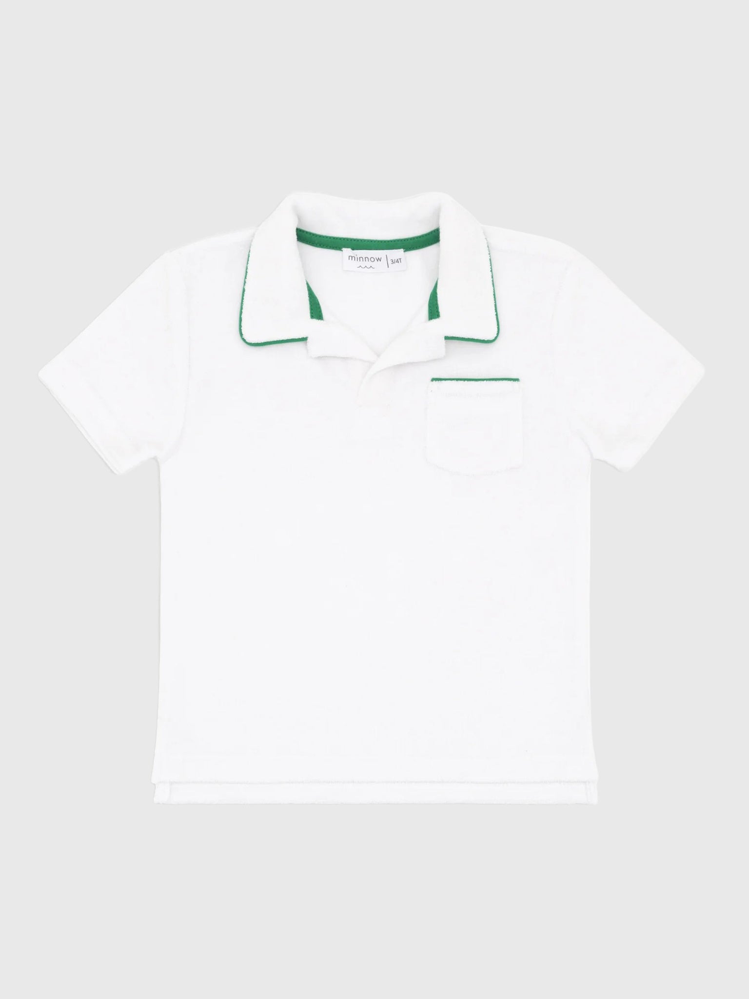 A cozy French terry polo with contrast piping details, perfect for anything from after-swim activities to playdates.
