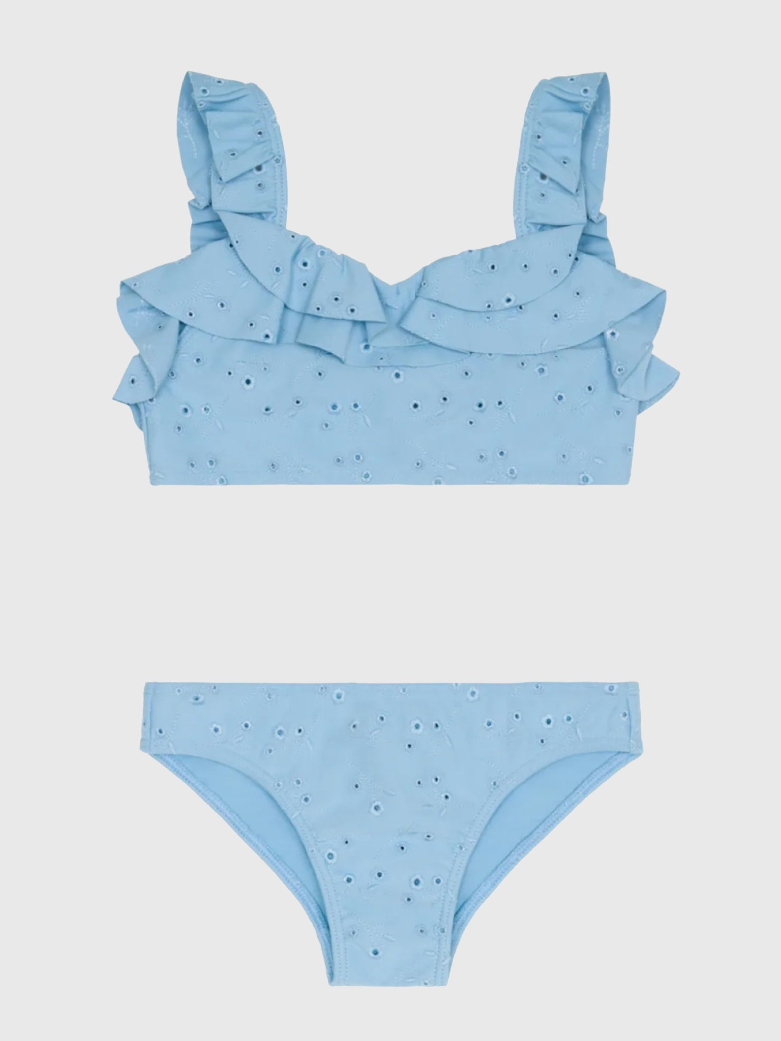 Girls' Eyelet V-Neck Ruffle Bikini Set