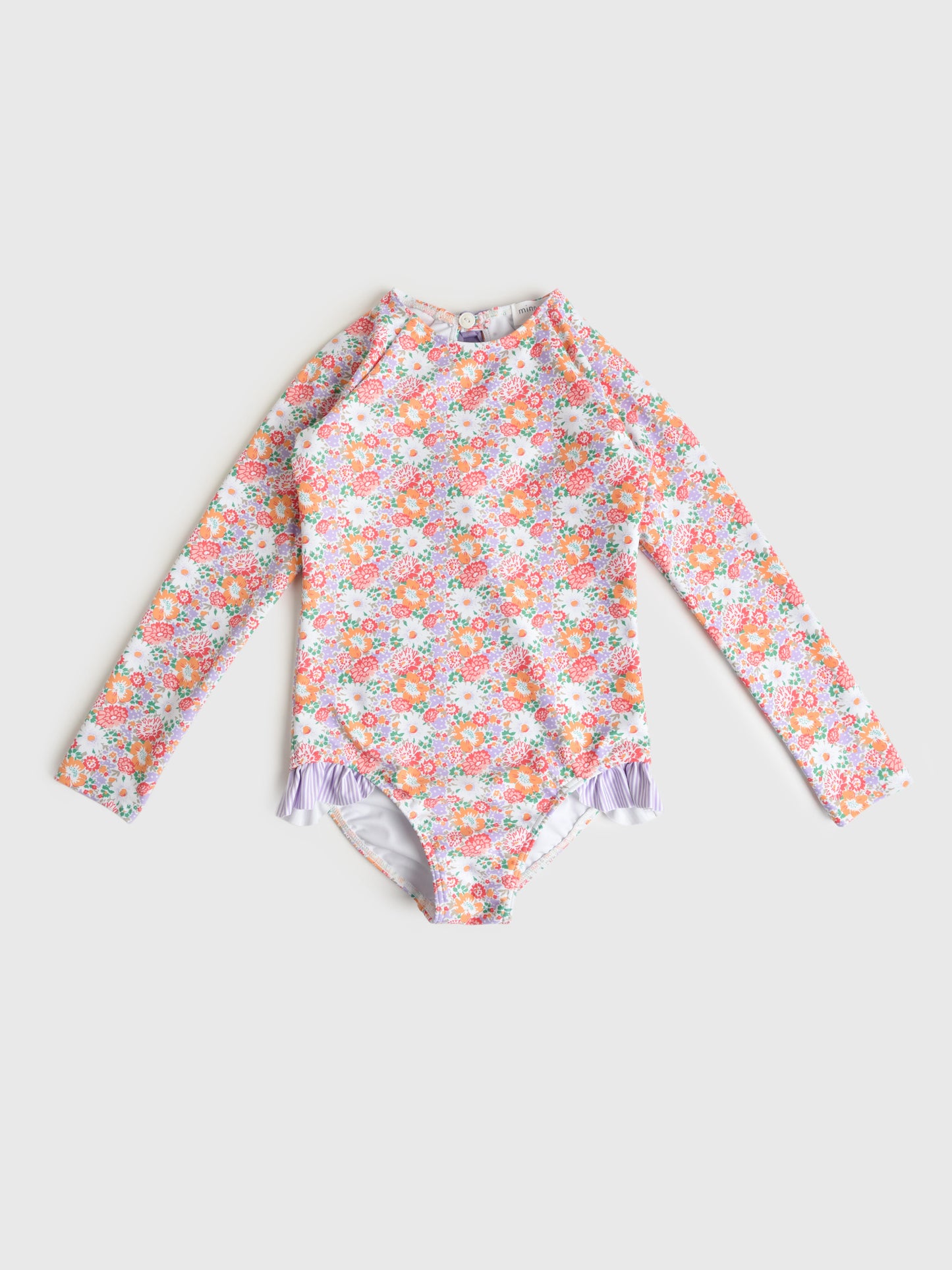 Girls' Island Blossom Rash Guard One-Piece Swimsuit