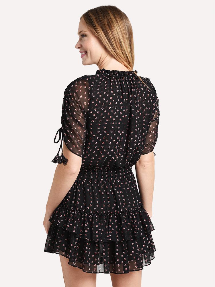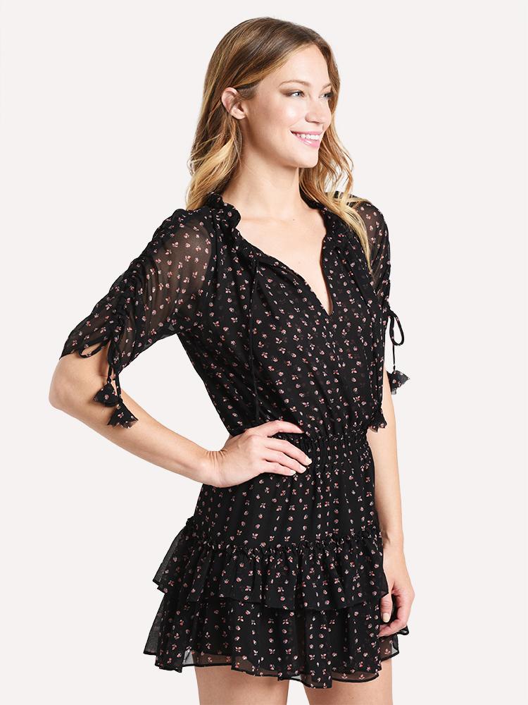 The Misa Becca Dress is an easy mini silhouette cut from bold floral print chiffon, ideal for the flirty gal in you.