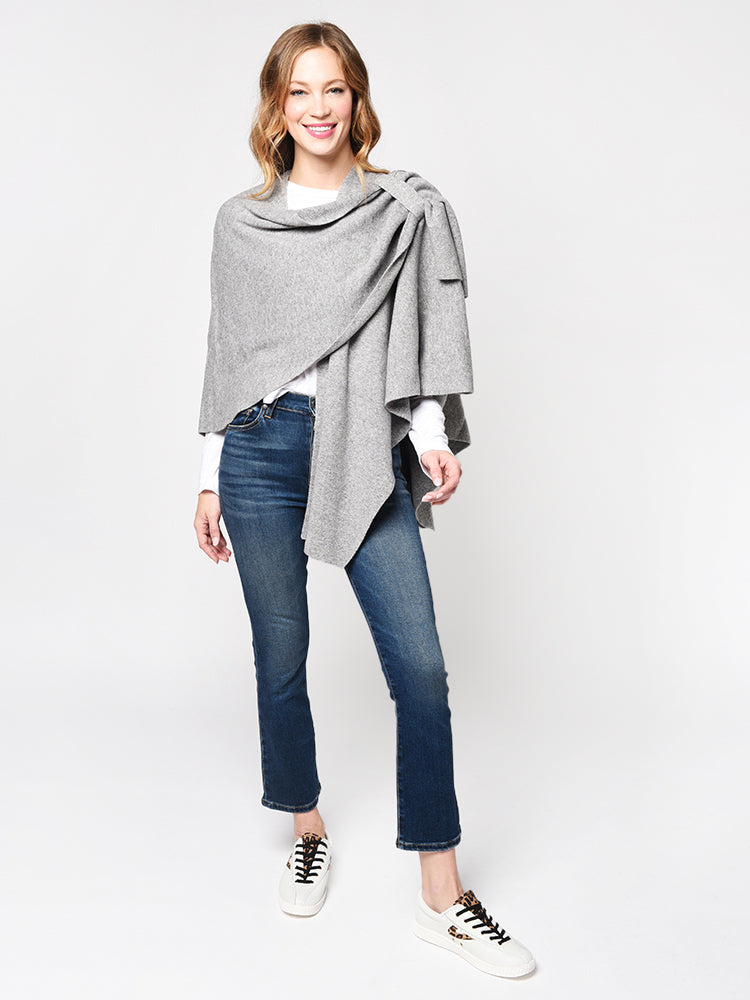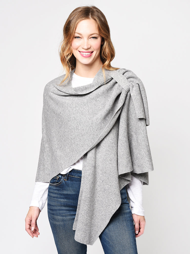 Layer up with the super versatile and warm Mitchie`s Matchings Women`s Knitted Wrap With Fox Poms.