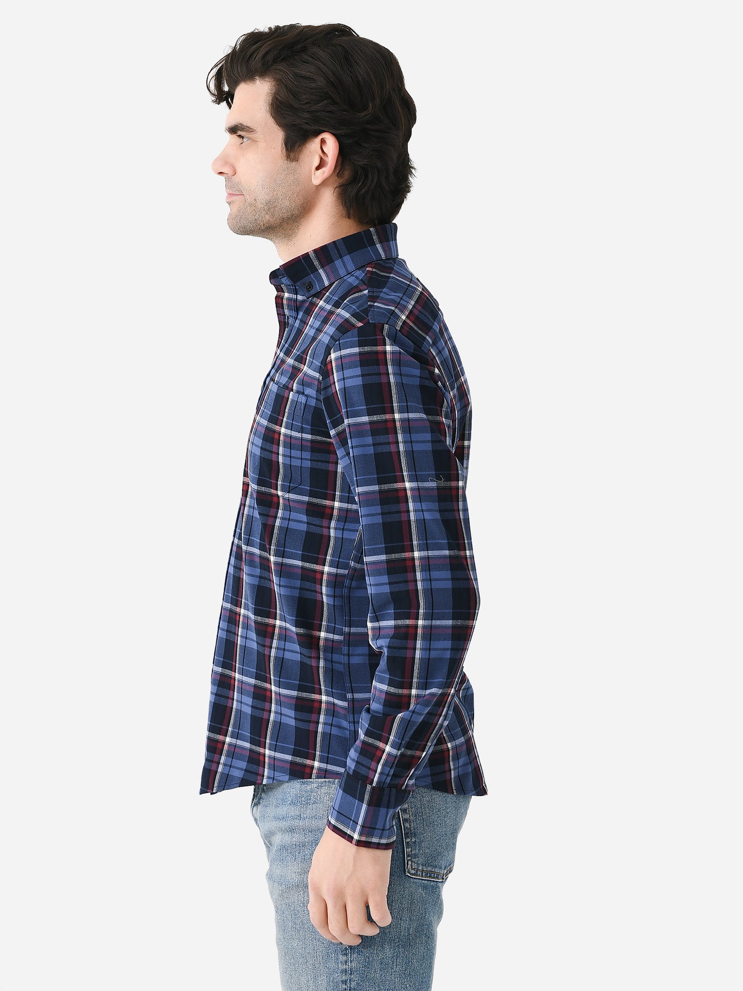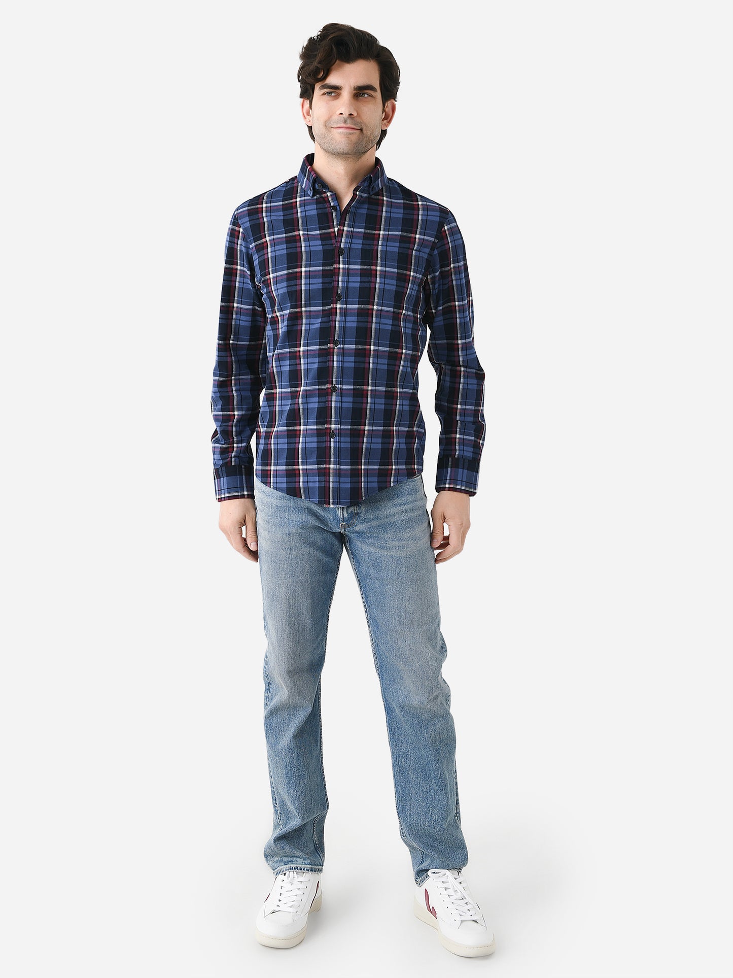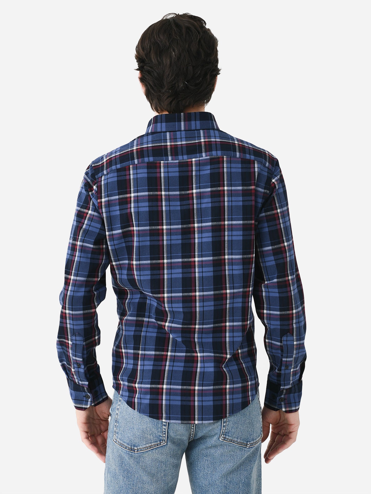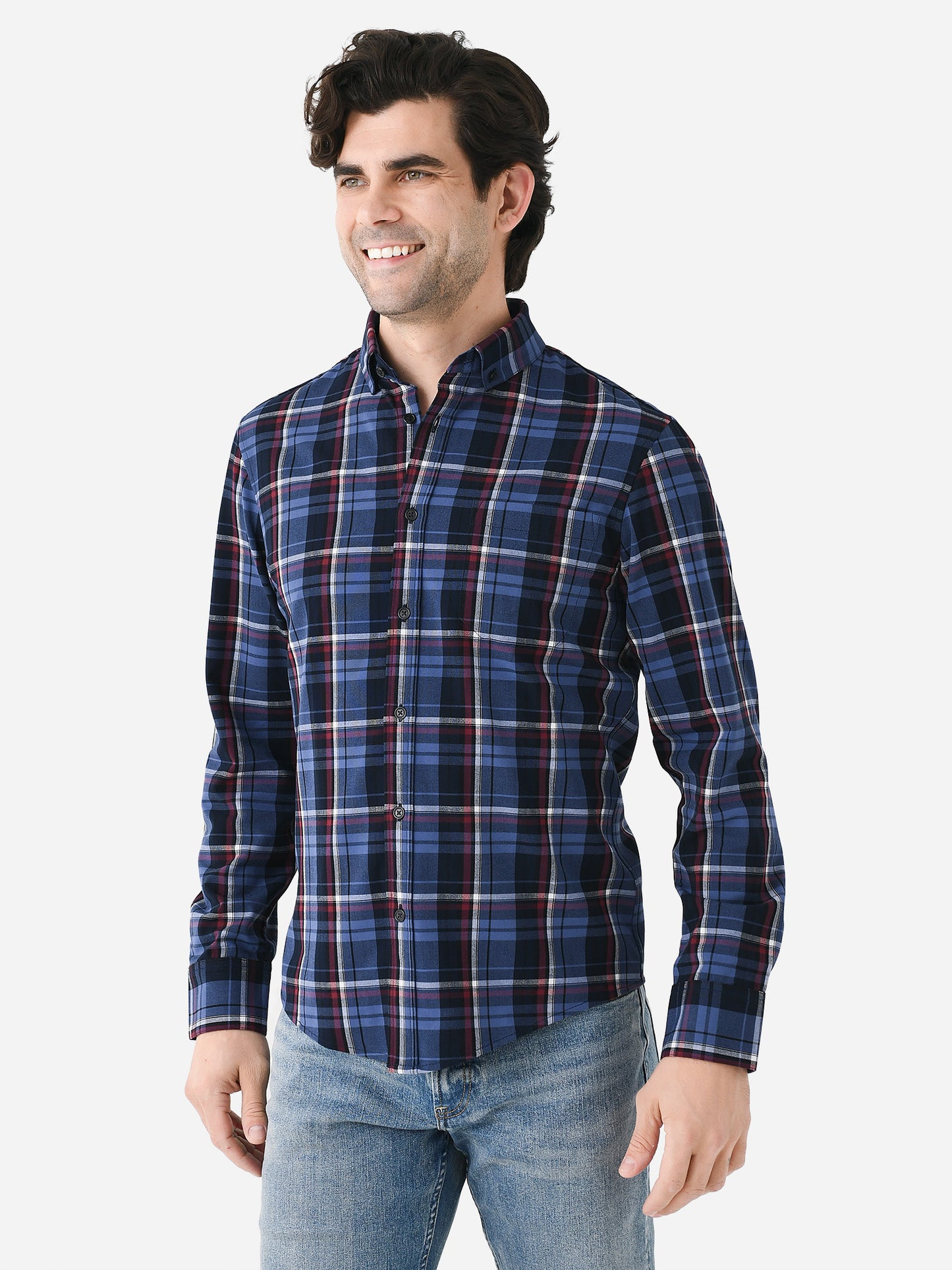 A lightweight, moisture-wicking flannel with a multi-colored plaid print.