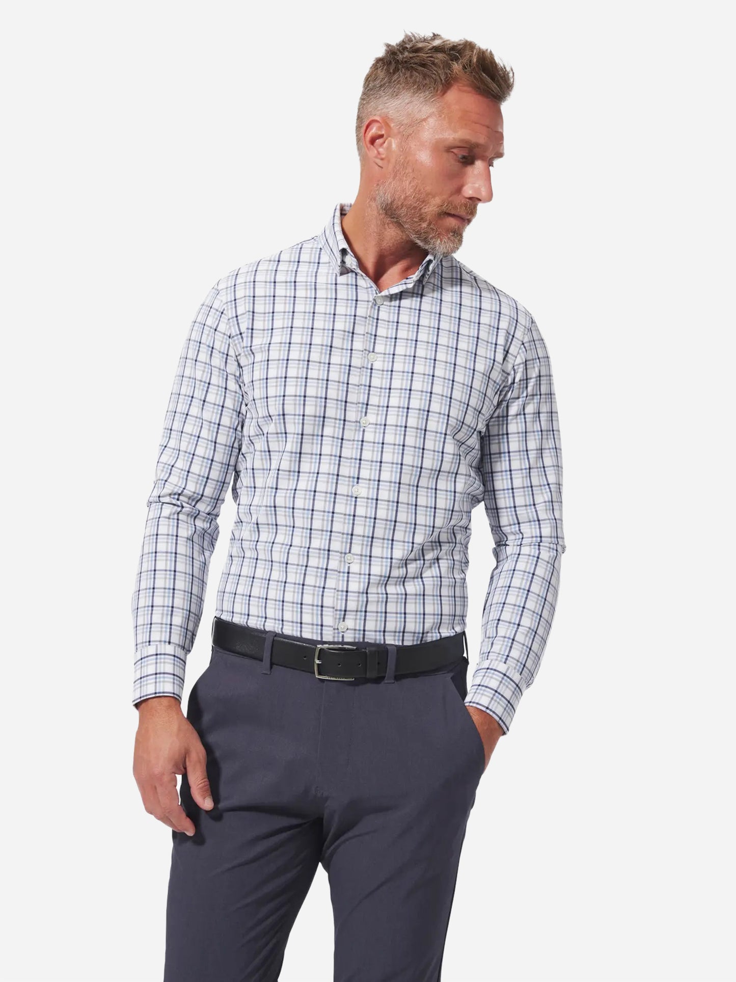 Wrinkle-resistant dress shirt with anti-odor technology.