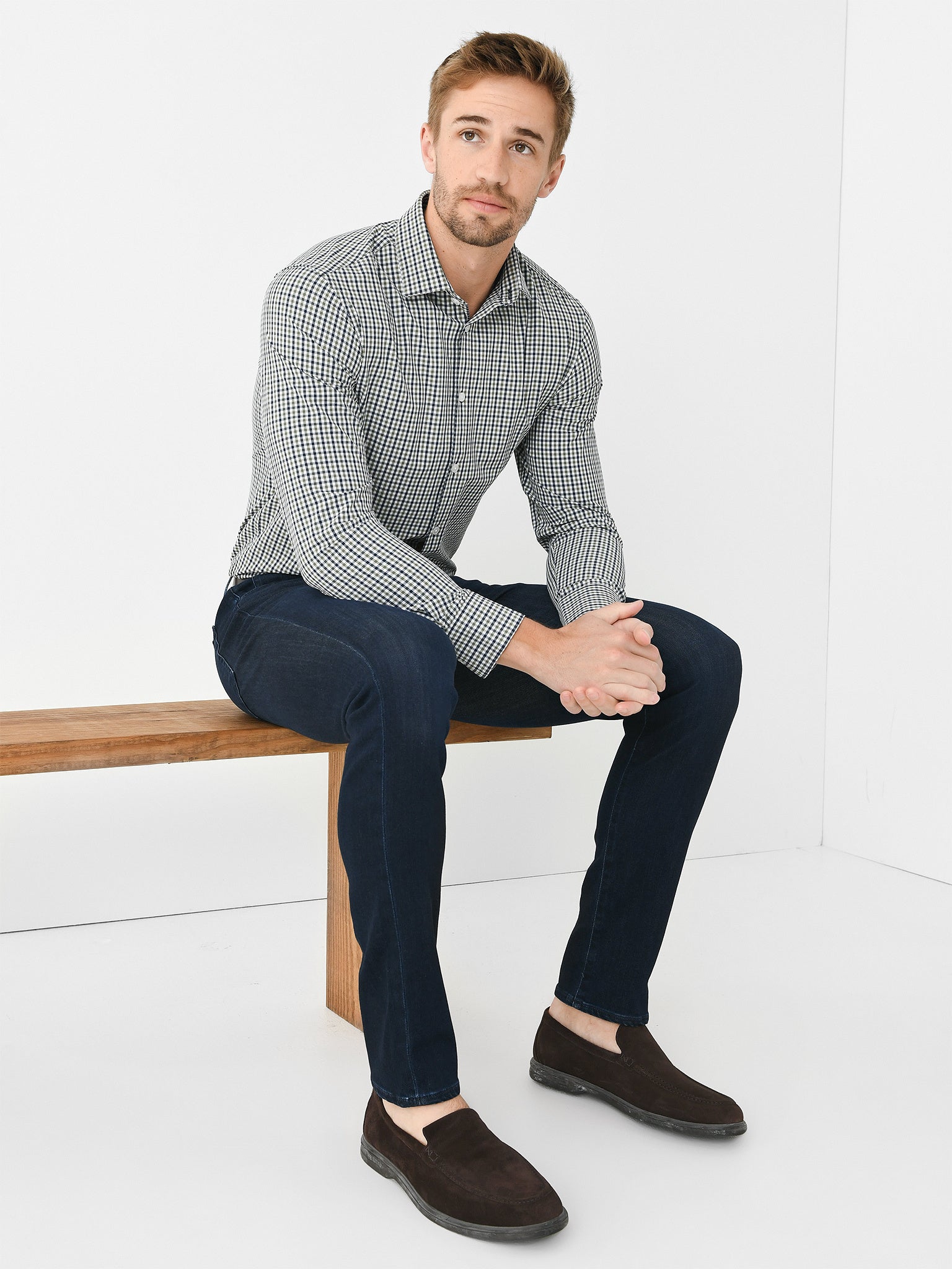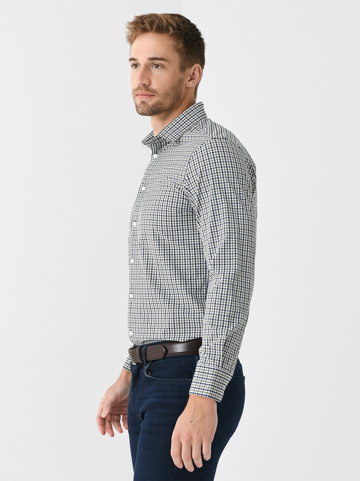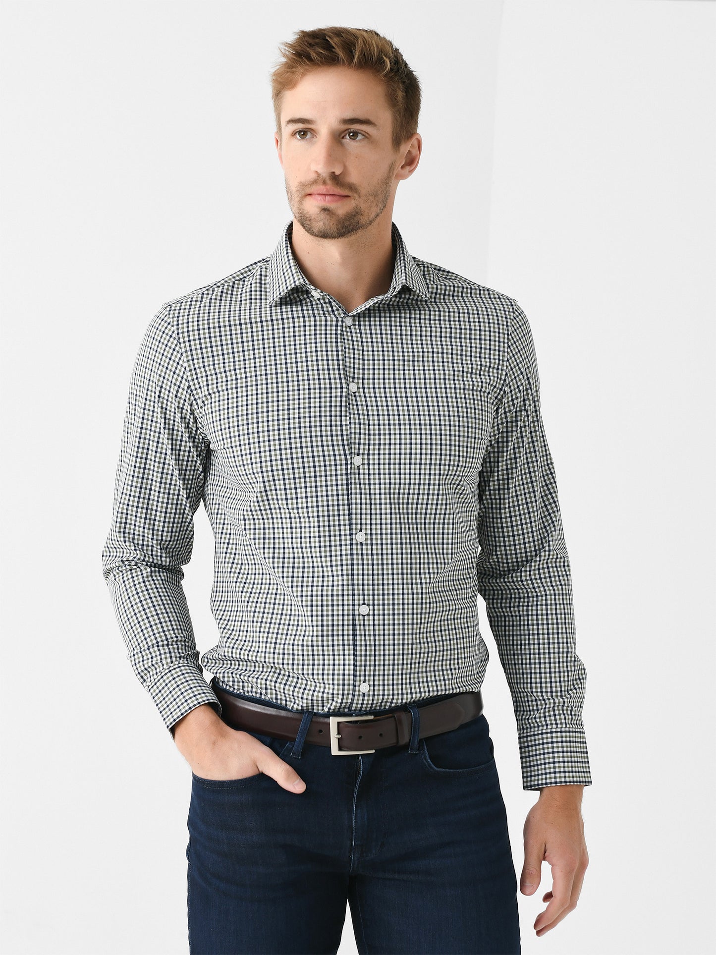 A classic gingham shirt with wrinkle-resistant properties and anti-odor technology.