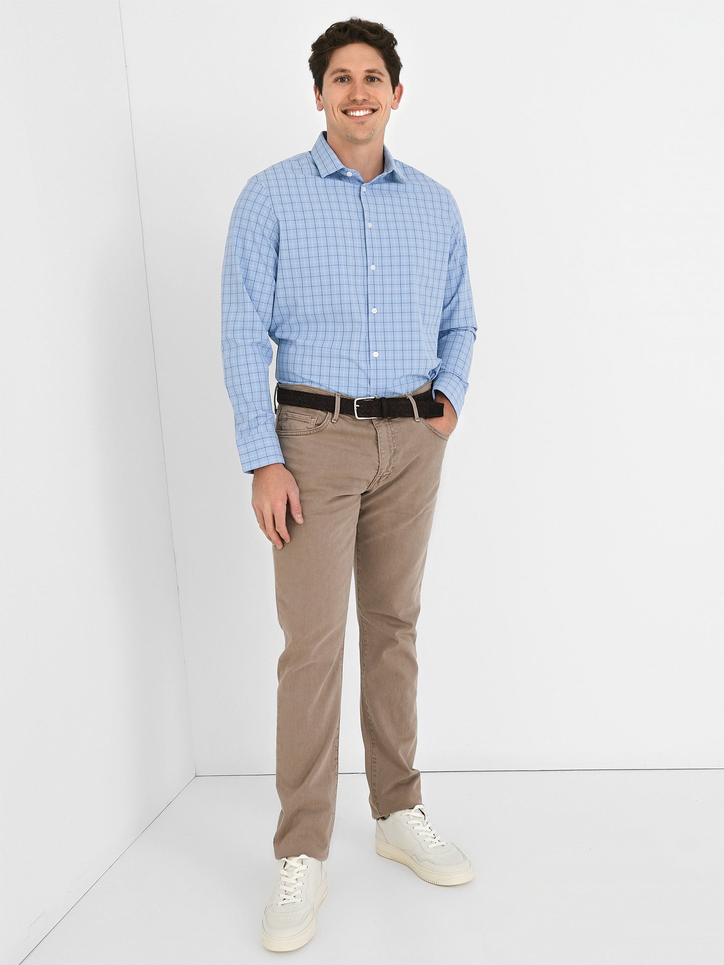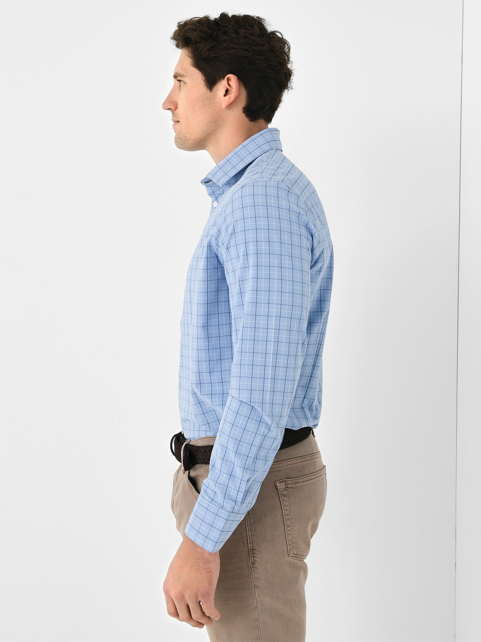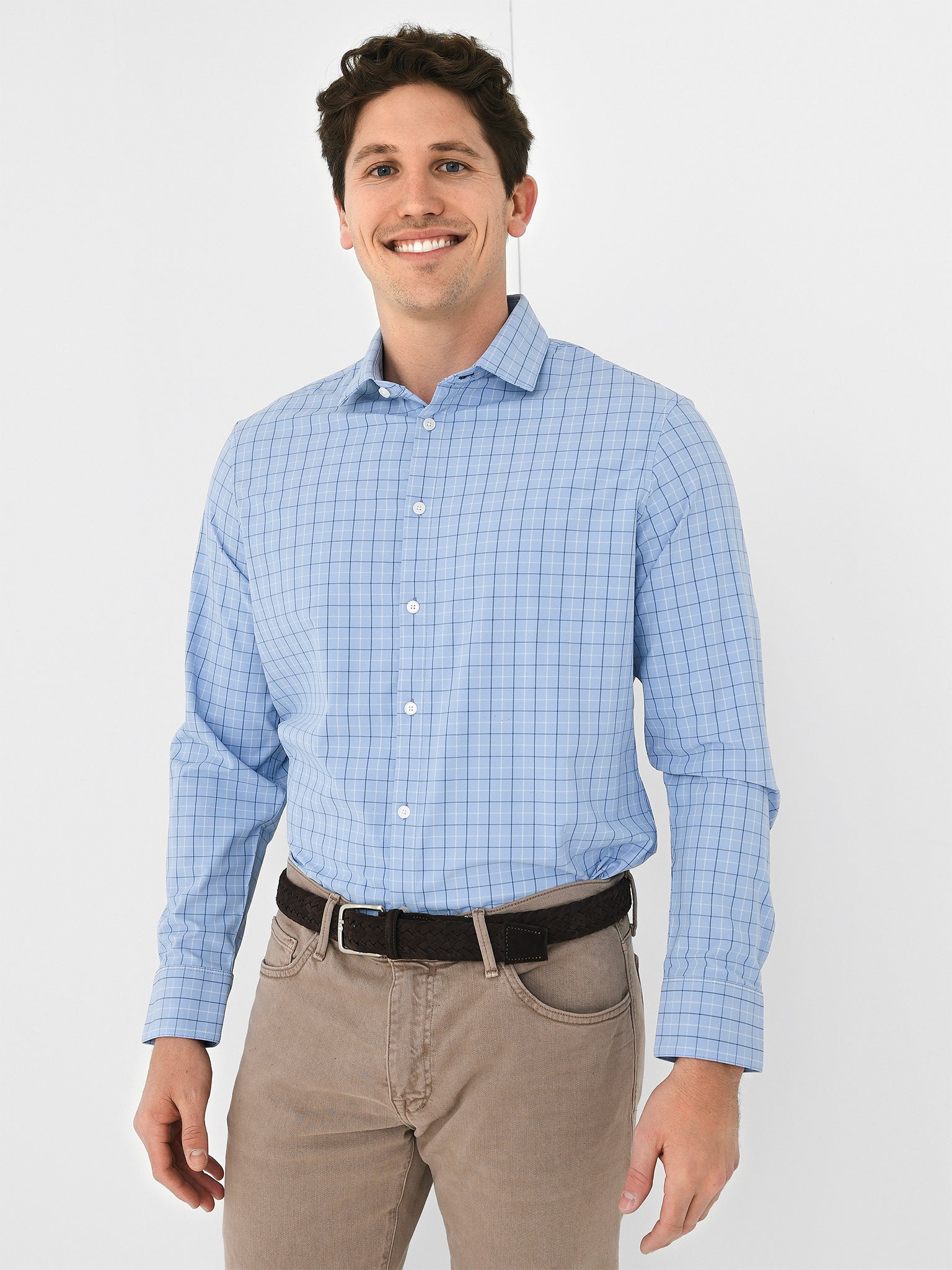 A stretchy, sweat-wicking dress shirt with a classic plaid print.
