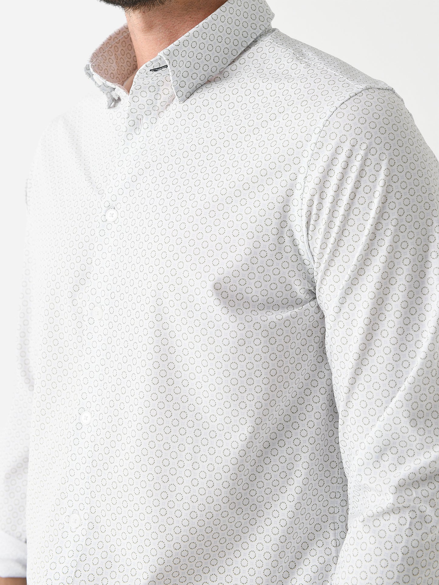 Lightweight dress shirt made from breathable performance fabric with a custom medallion print.