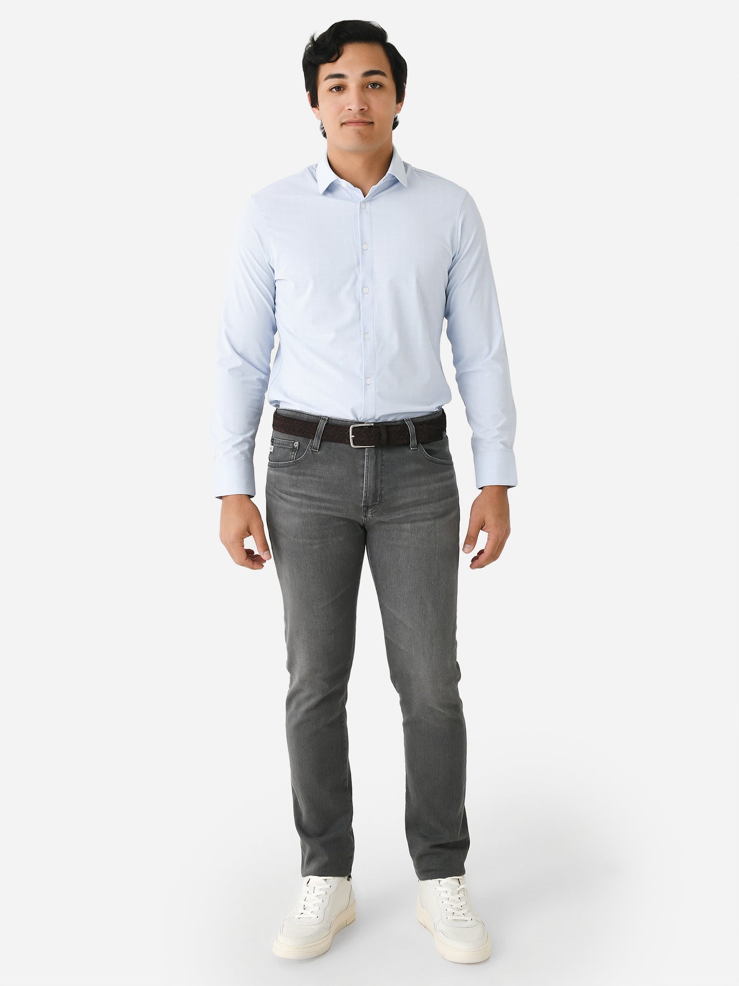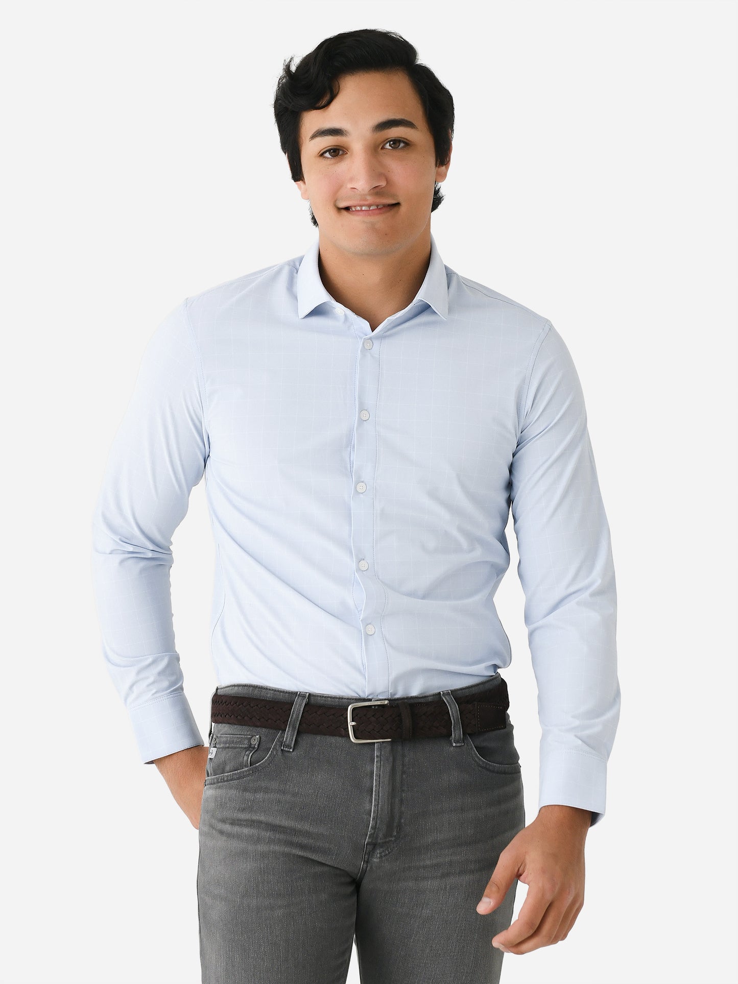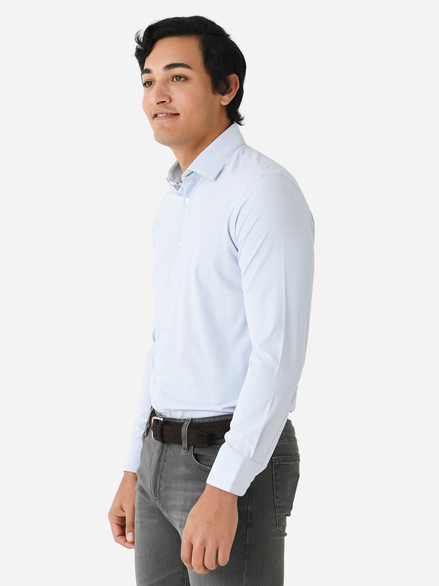 A subtle plaid dress shirt made from breathable fabric with a wrinkle-resistant finish.