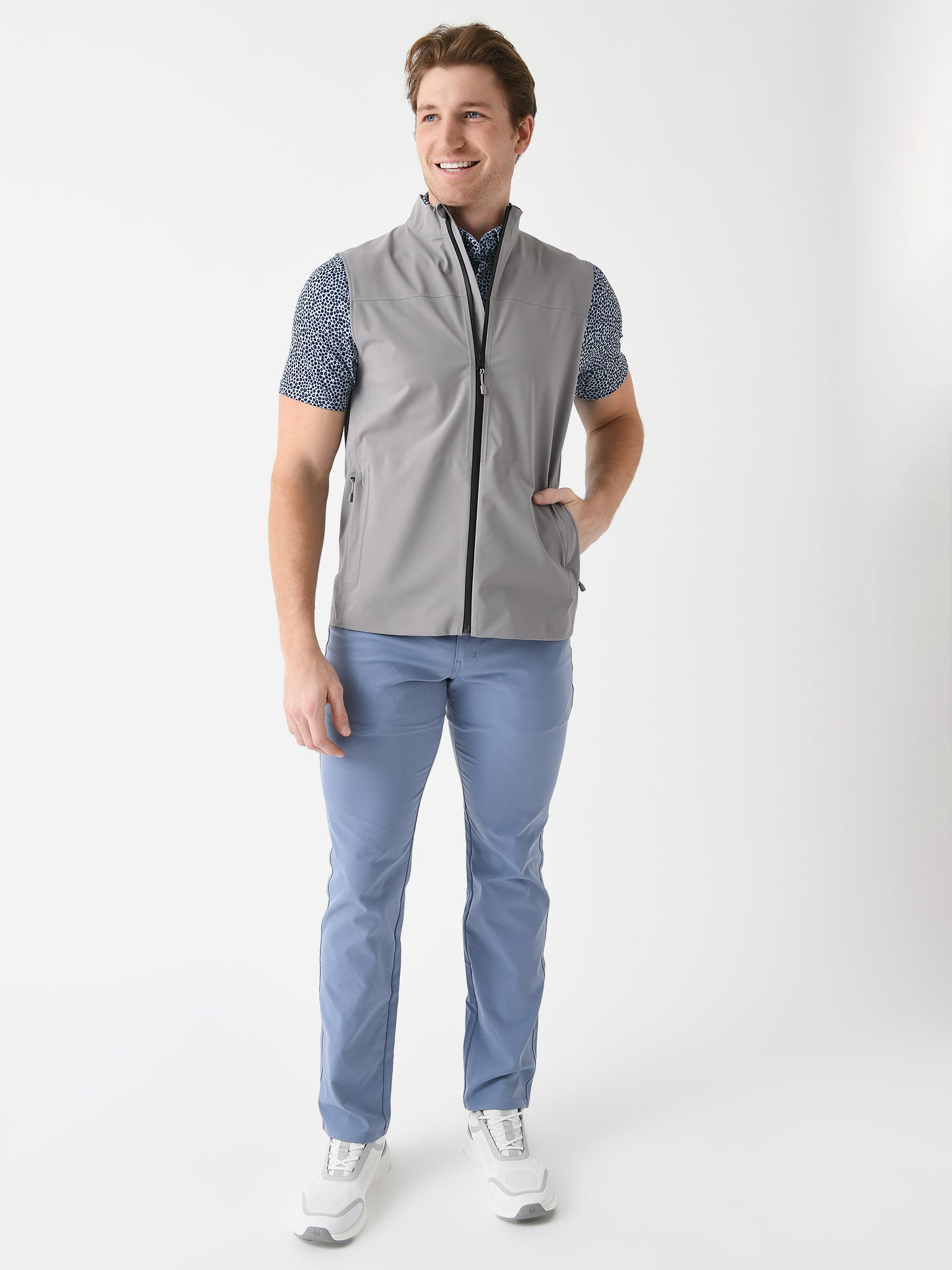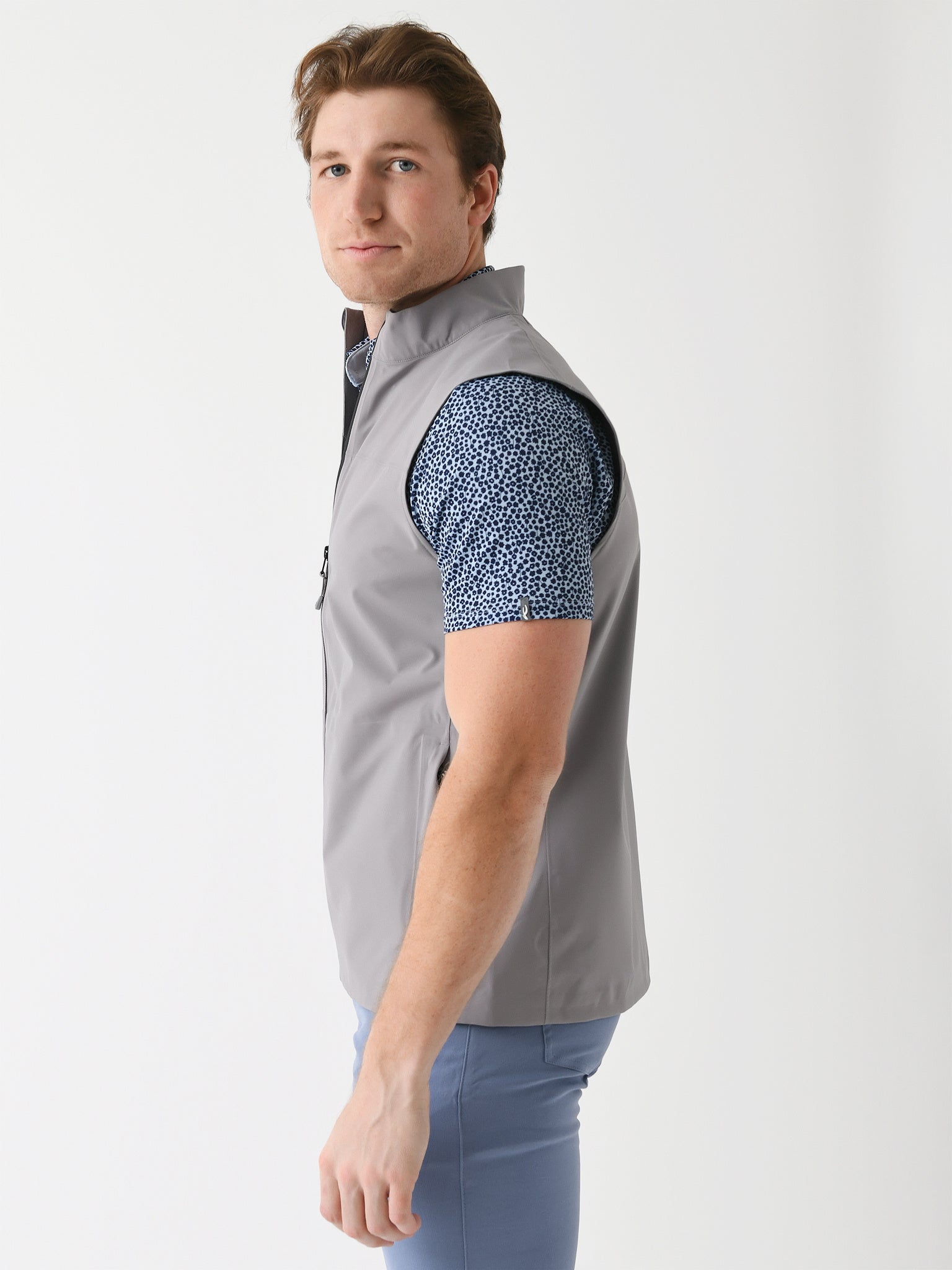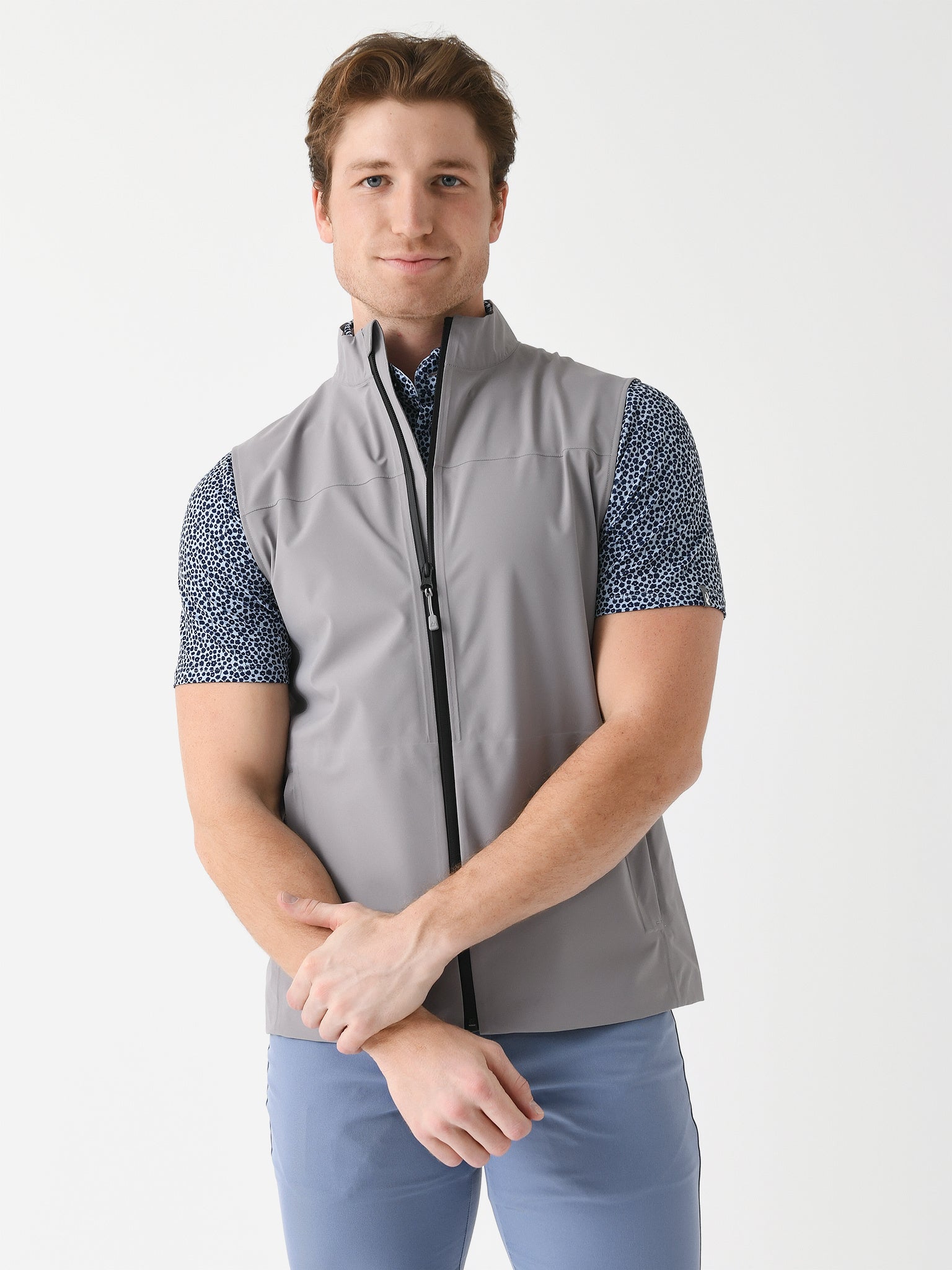 A waterproof and wind-resistant vest with ergonomic seams for a modern silhouette.
