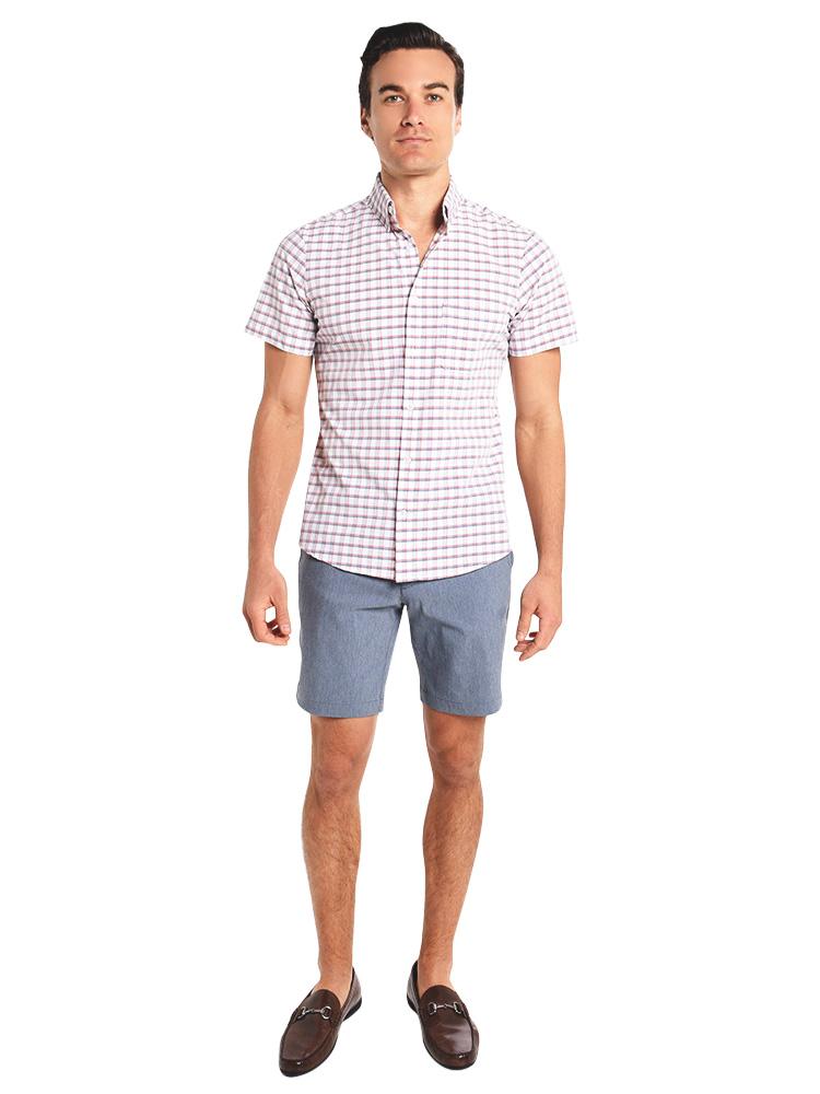 - Styled with Mizen+Main Short Style # CS-1004. Model is wearing size medium shirt and 32 short.