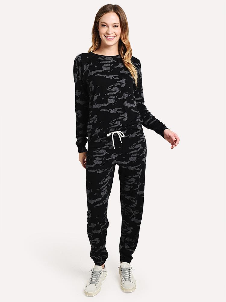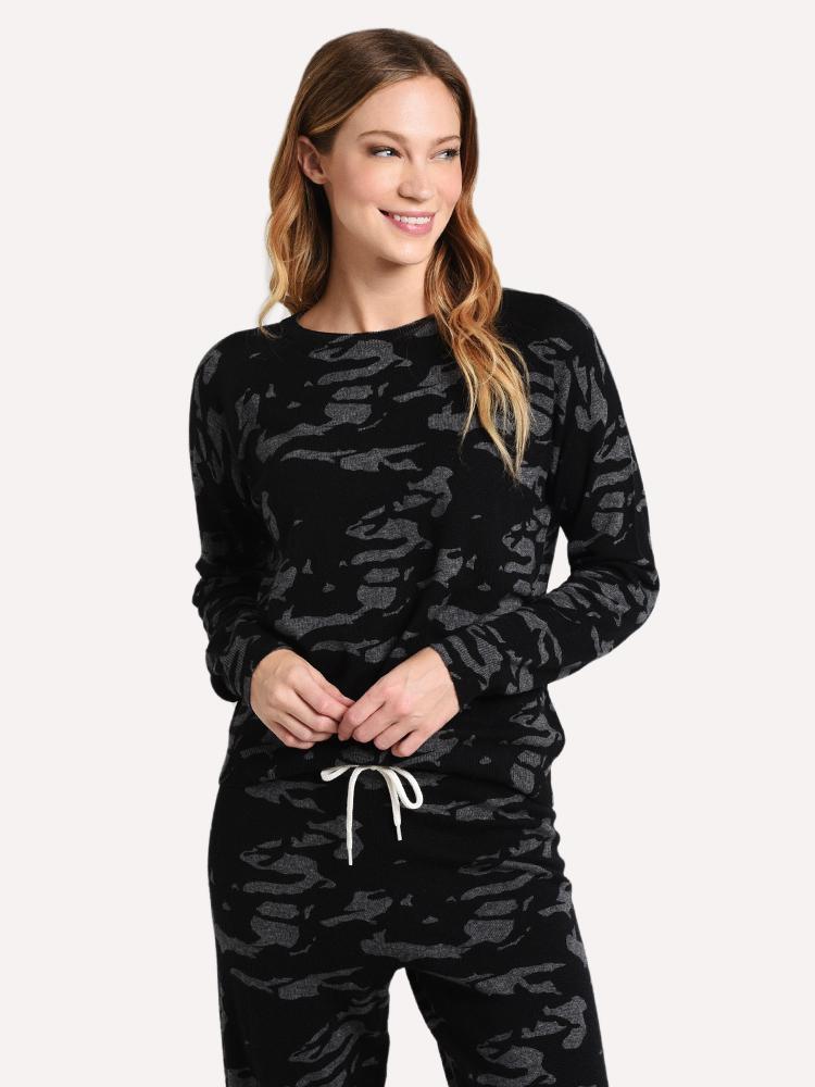 Get cozy in the Monrow Camo Sweater Vintage Raglan.