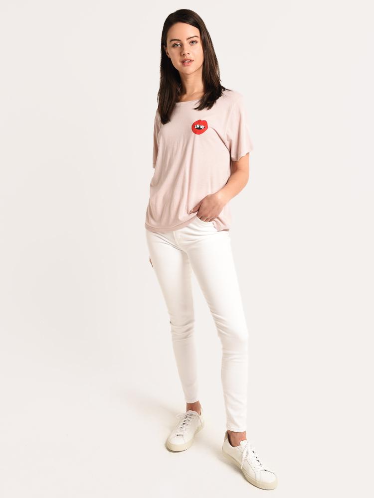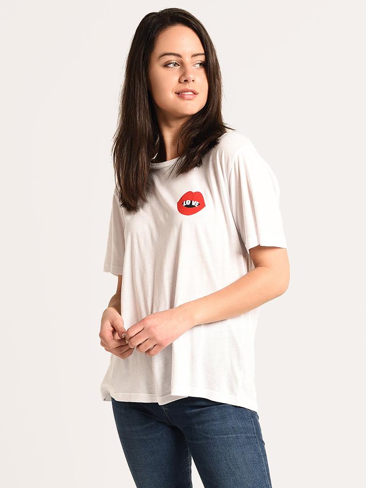 The Monrow Oversized Love Crew Neck Tee is quirky, chic and writes love on the lips.
