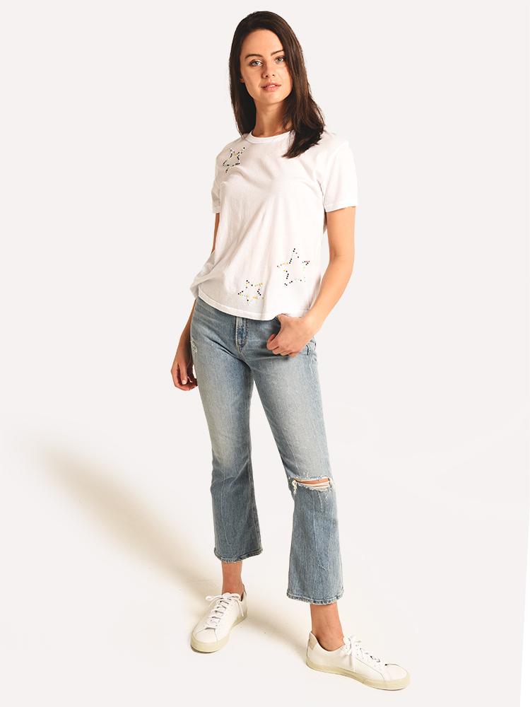 - Styled with Citizens of Humanity jeans Style # 1761-850 and Veja sneakers Style # EA2001W. Model is wearing size small tee and size 25 jean.