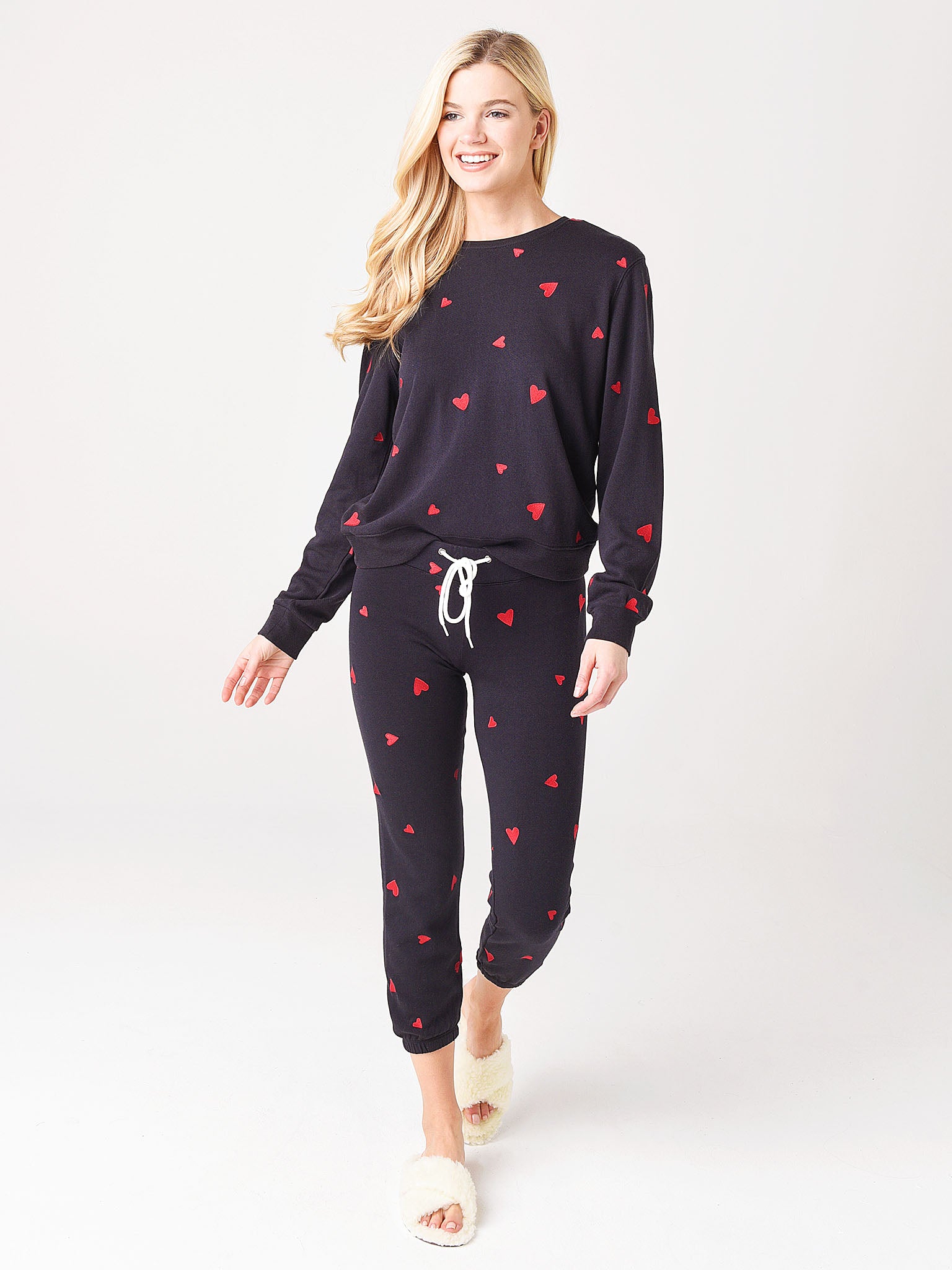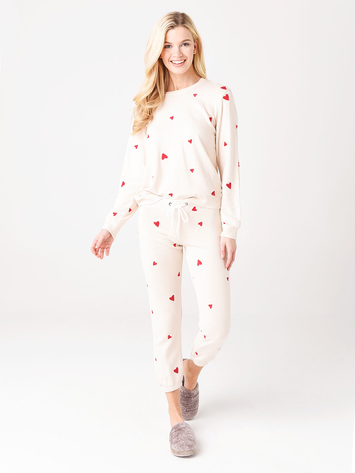You'll have love and comfort on lock in the super cute Monrow Women's Embroidered Heart Vintage Sweatpant.