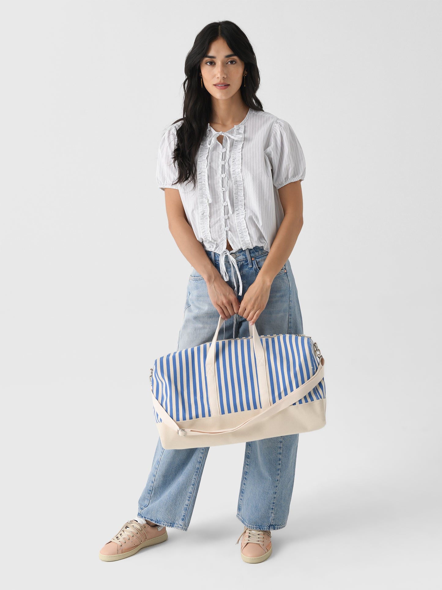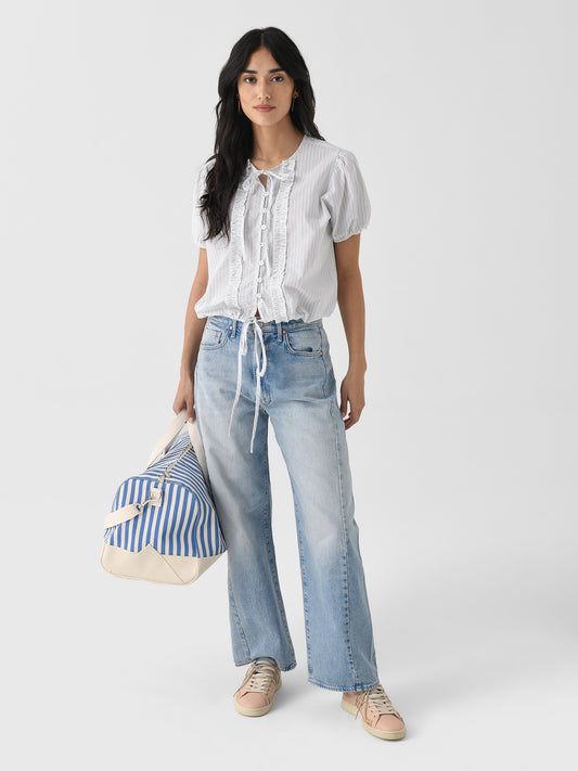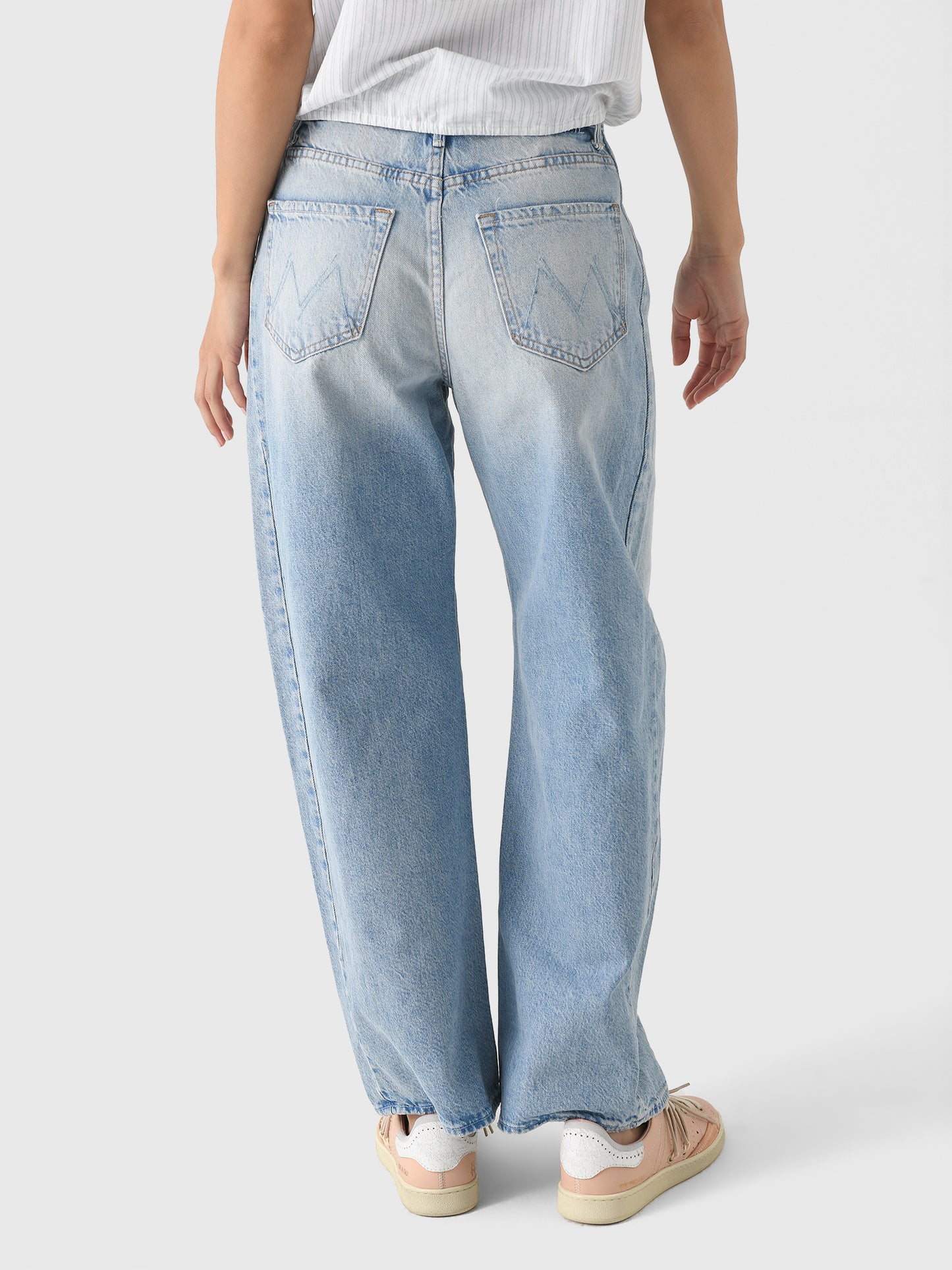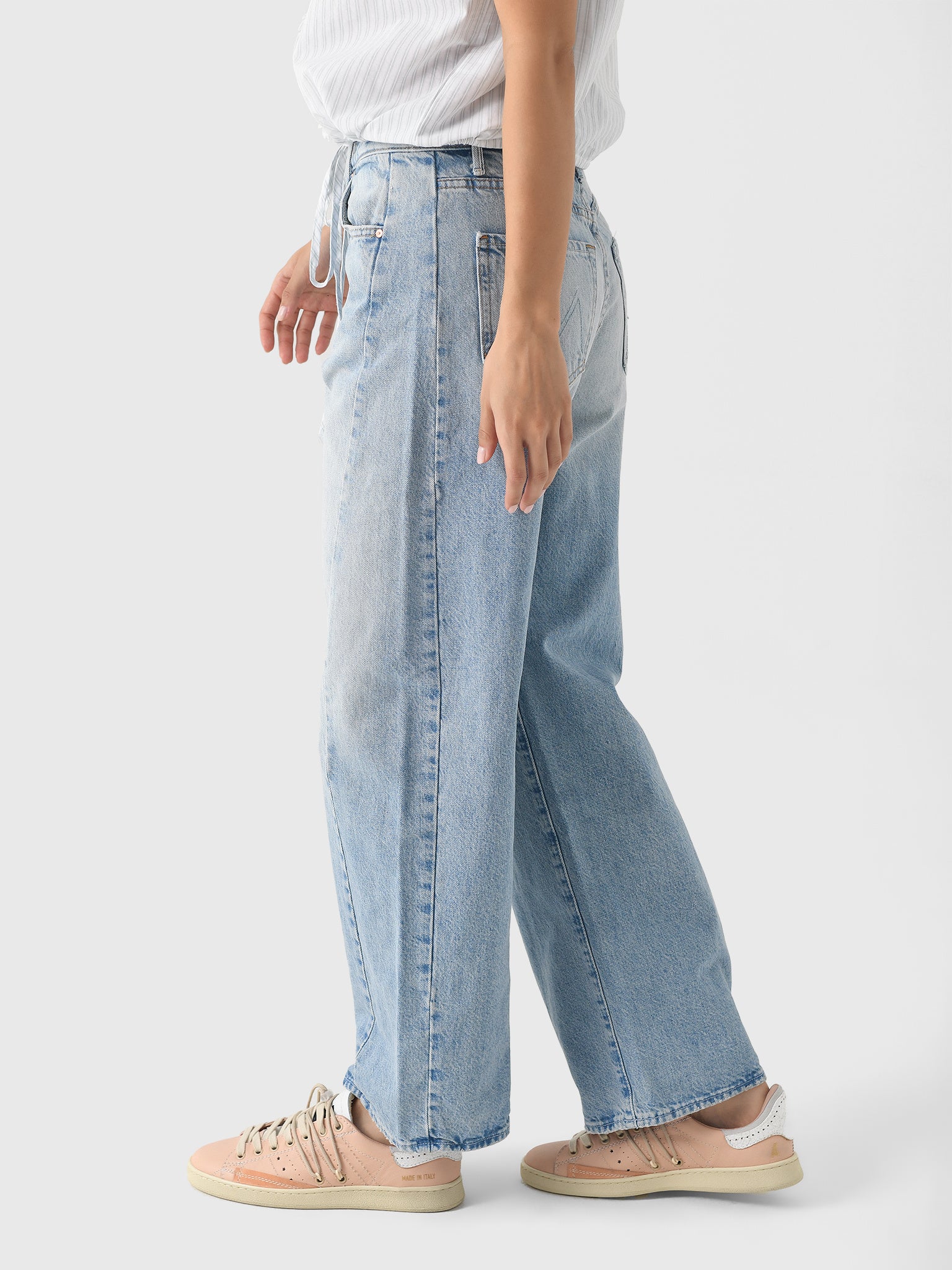 This super high-waisted jean is made from superior rigid denim and features a wide, barrel-leg design.