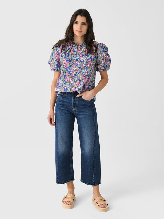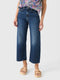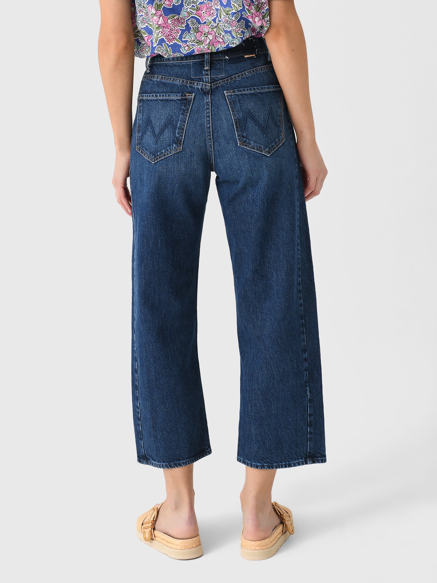 This super high-waisted jean is made from rigid denim. It has a wide, curved leg and an ankle-length inseam.