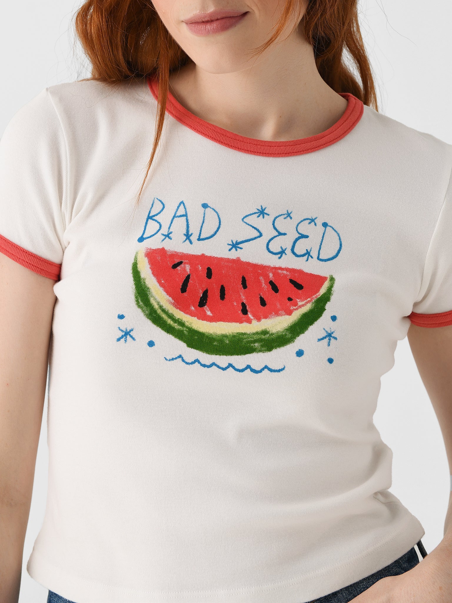 A slightly cropped tee made from soft cotton with a custom graphic.