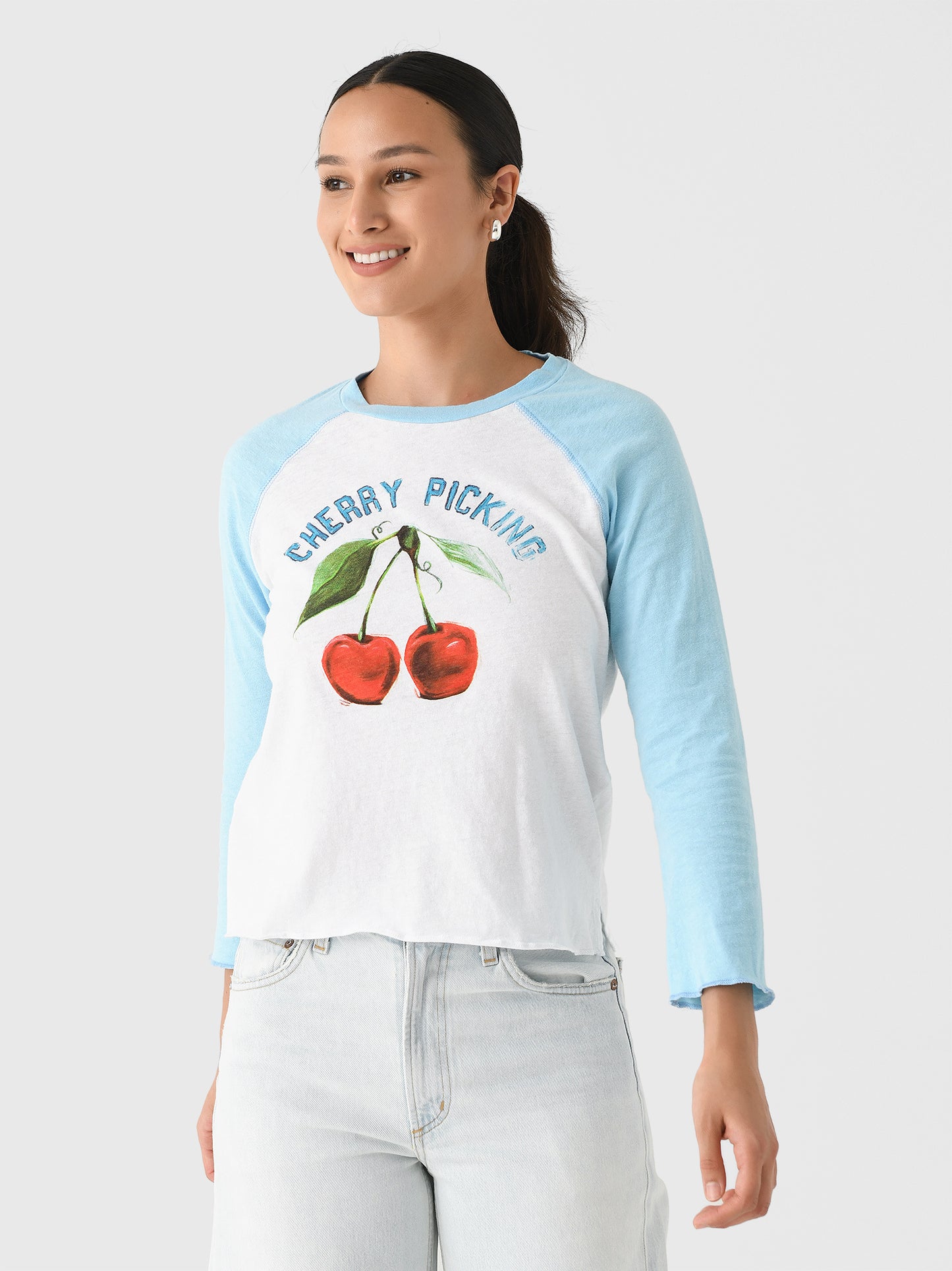 A baseball-style tee made from soft cotton with a custom graphic.