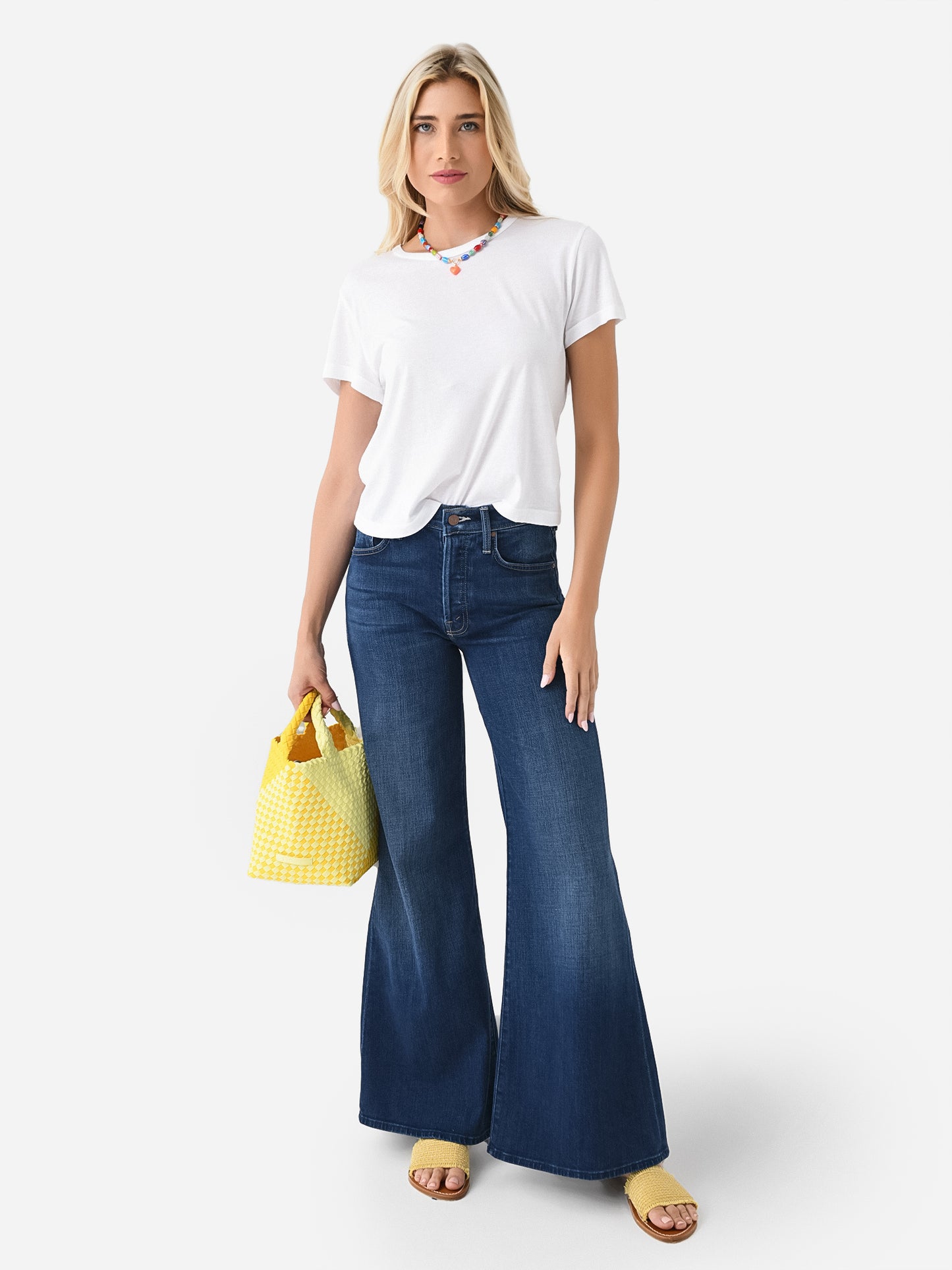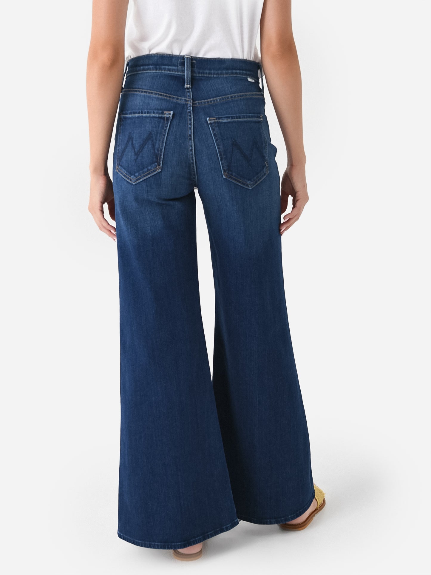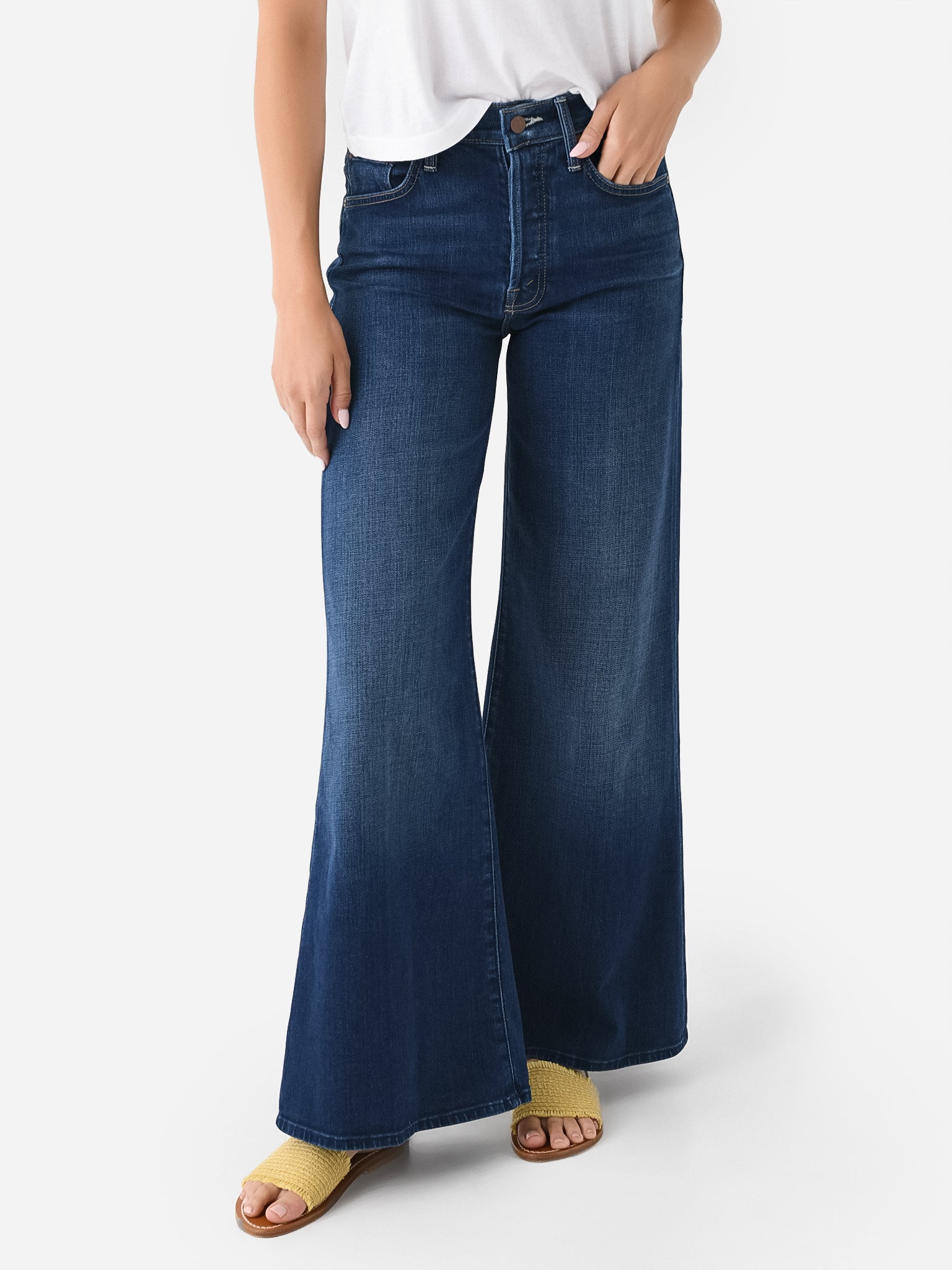 A dark blue wash adds to this wide-leg jean's stunning, retro-chic aesthetic.