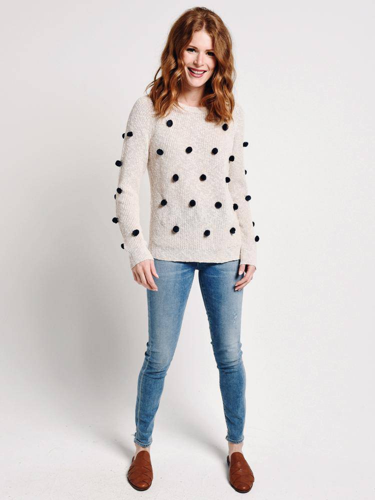 Add the fun Mo:Vint Pompom Sweater to the mix.