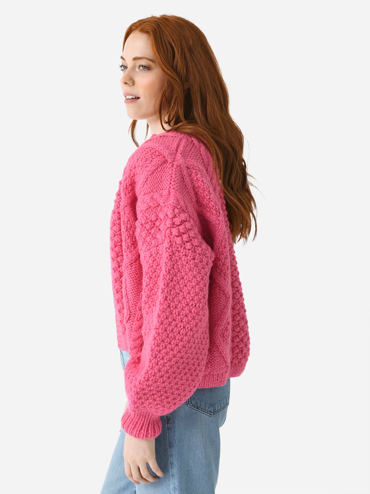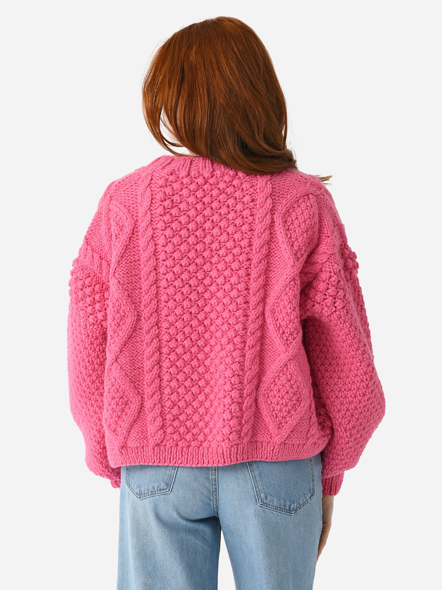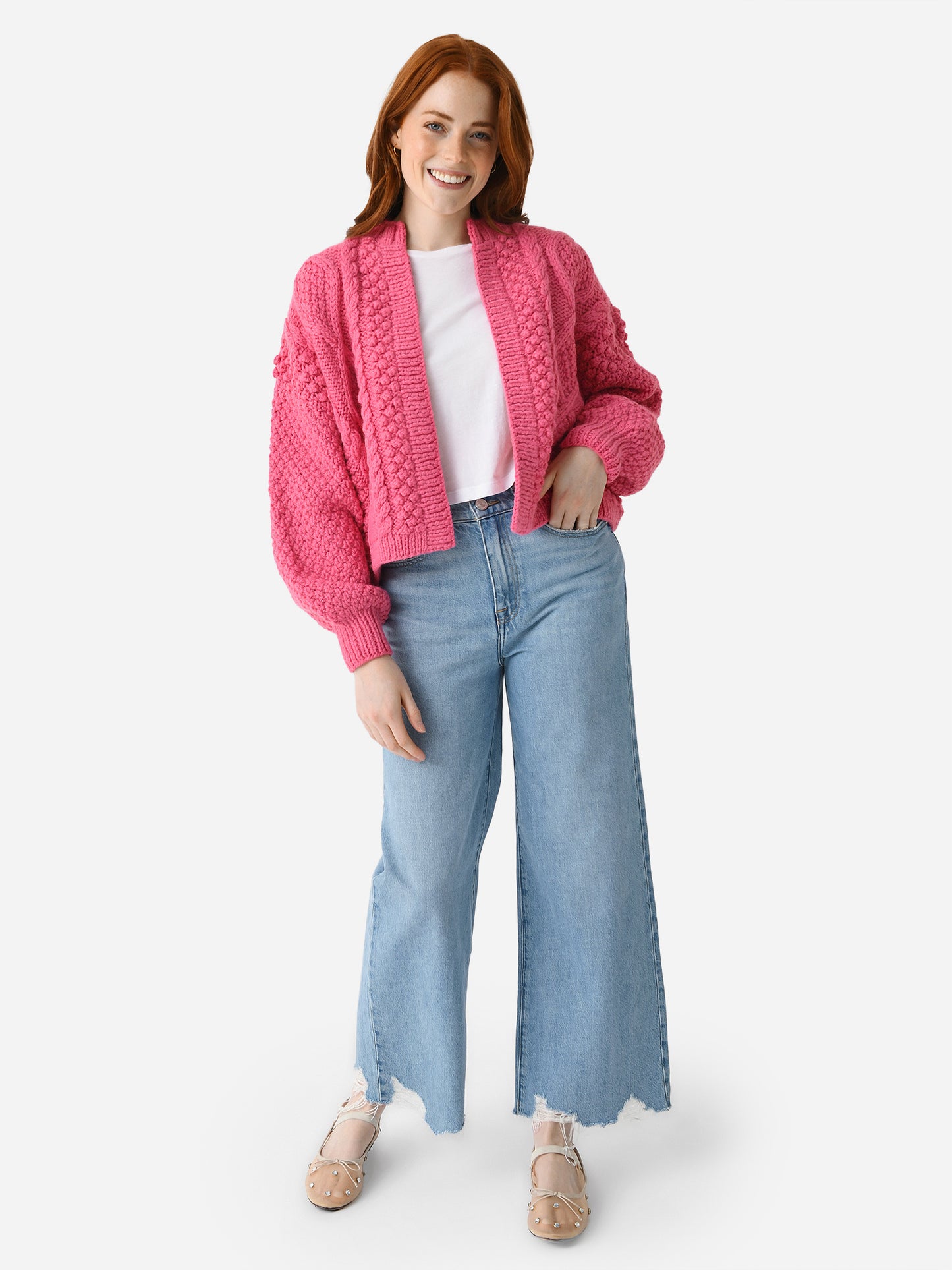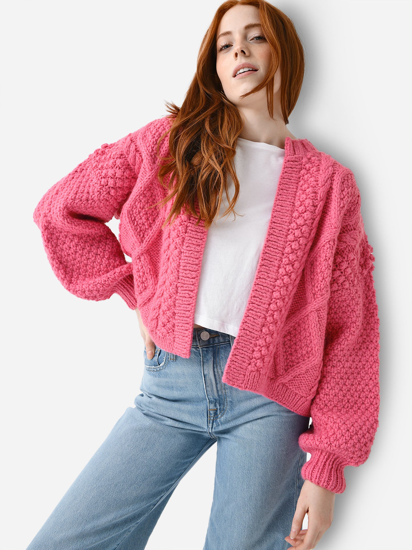 An open-front cardigan made from a chunky wool knit with a slightly oversized fit.