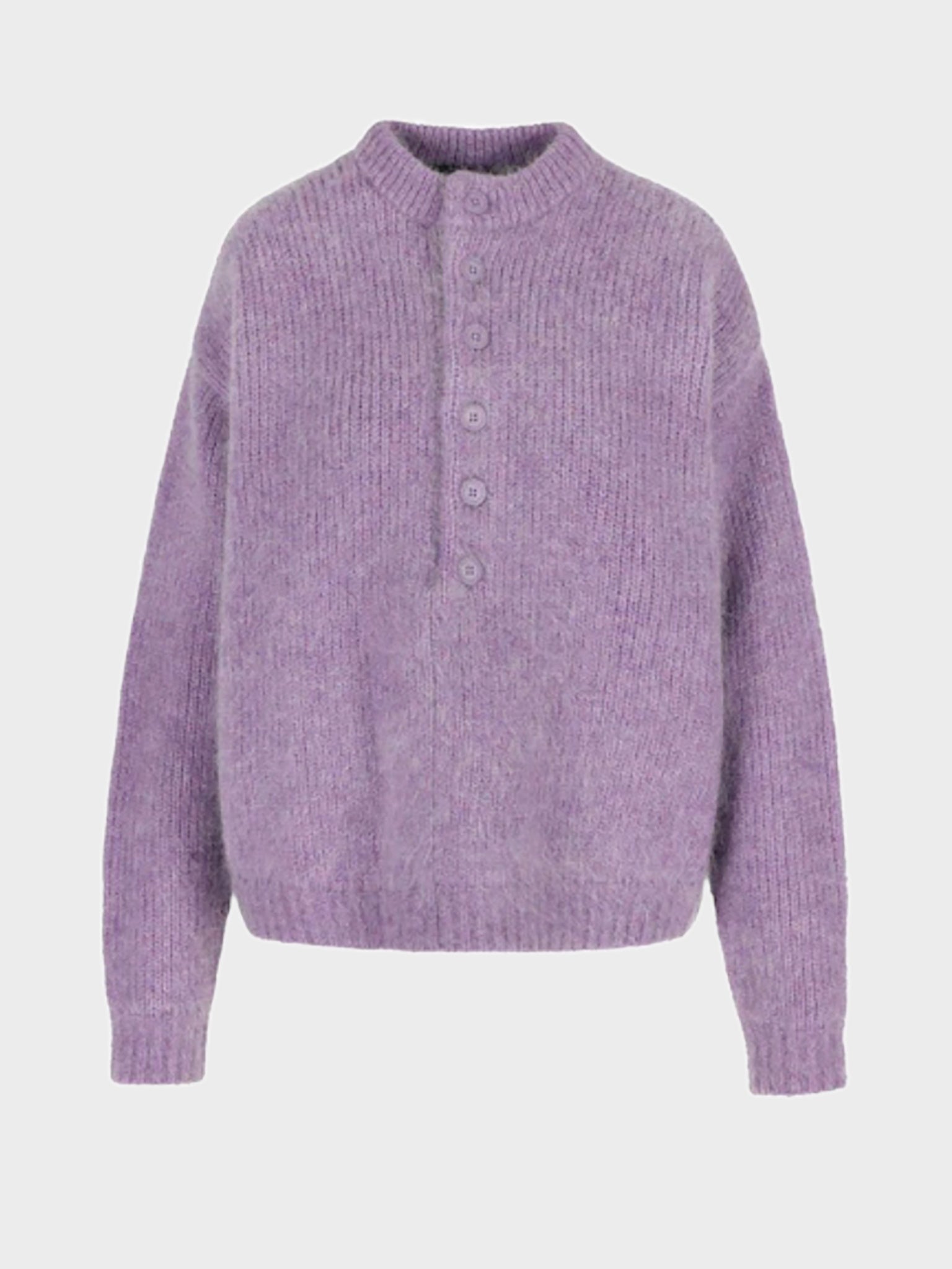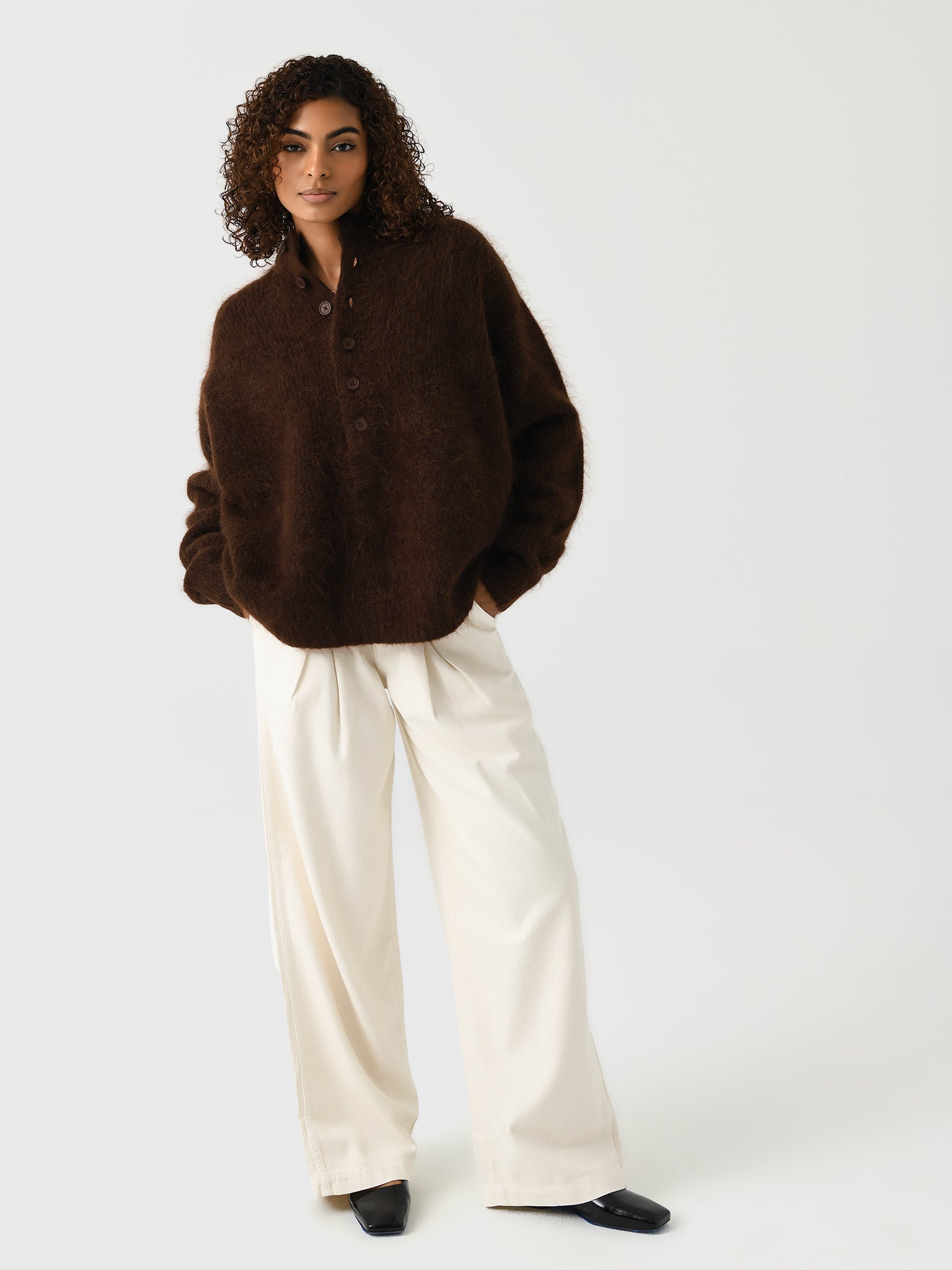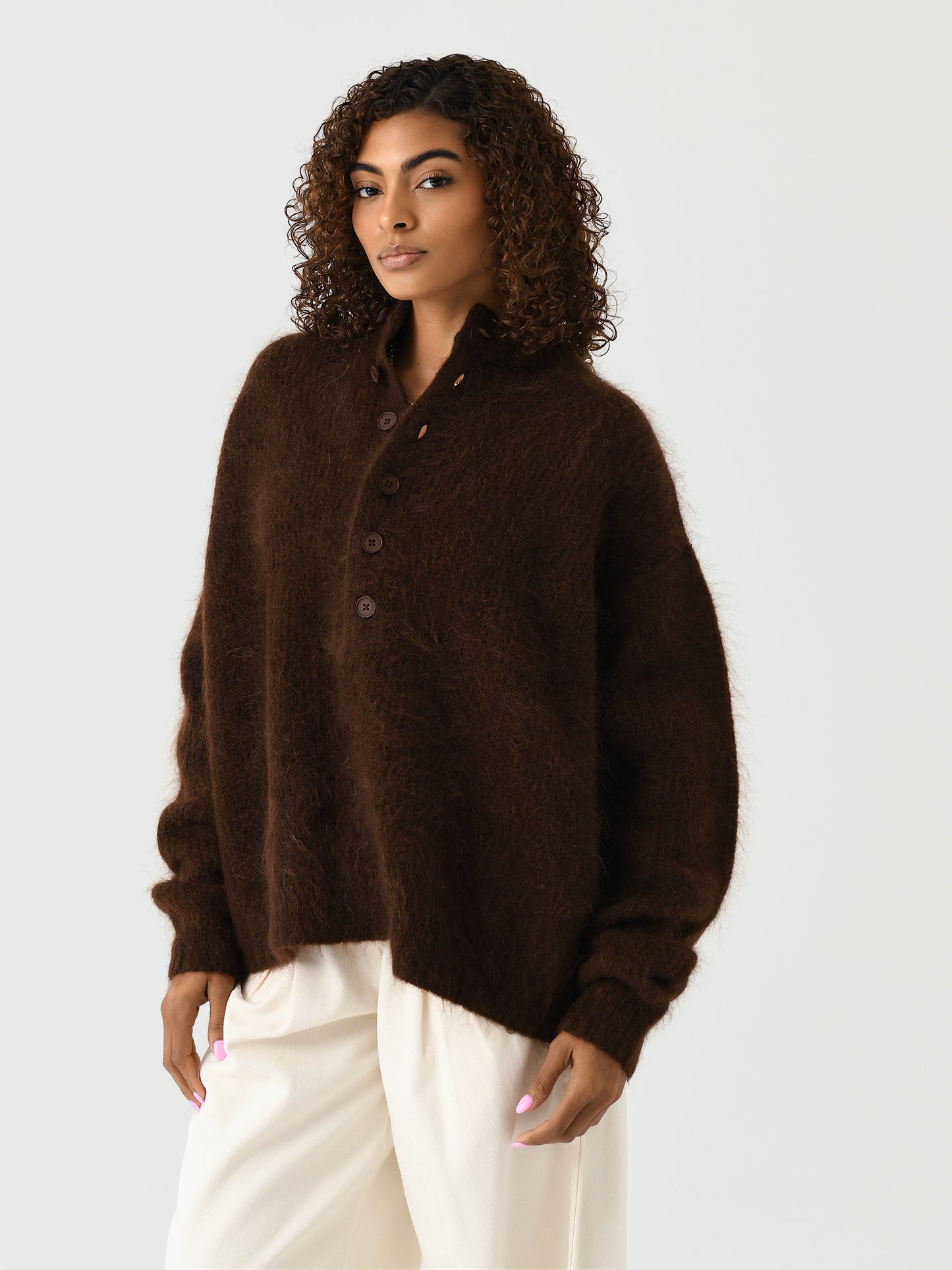 A cozy oversized sweater made from a premium mohair blend and finished with a partial button placket.