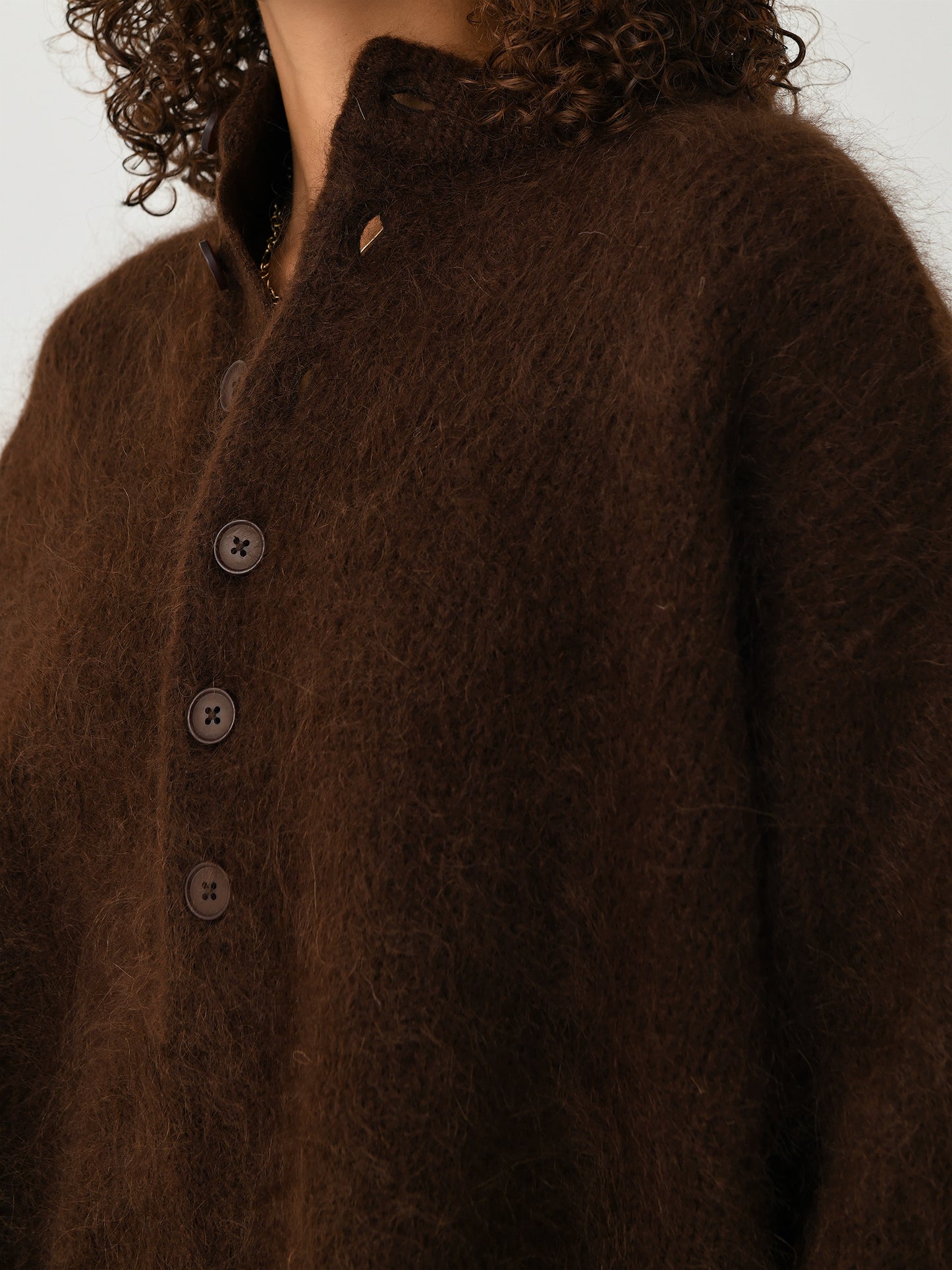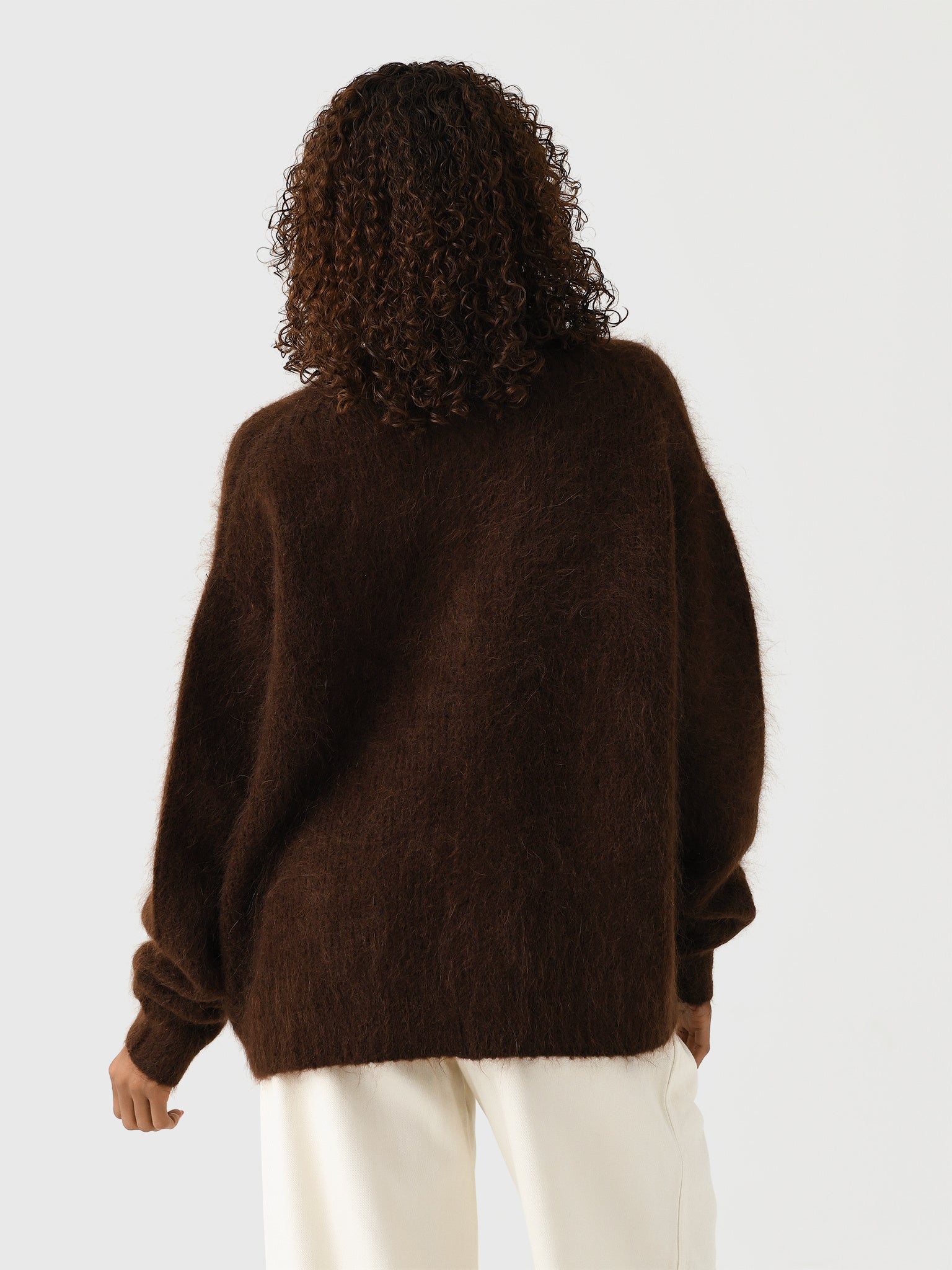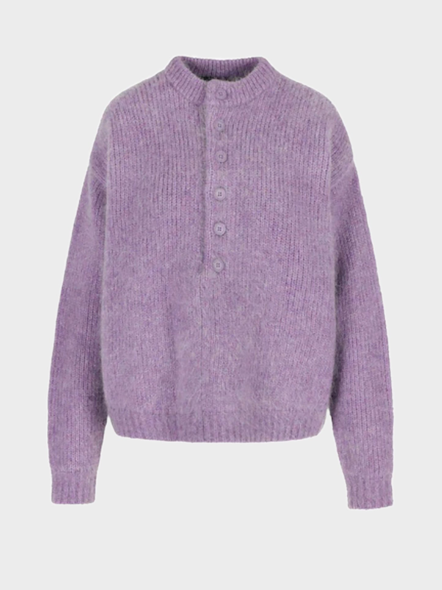 A cozy oversized sweater made from a premium mohair blend and finished with a partial button placket.