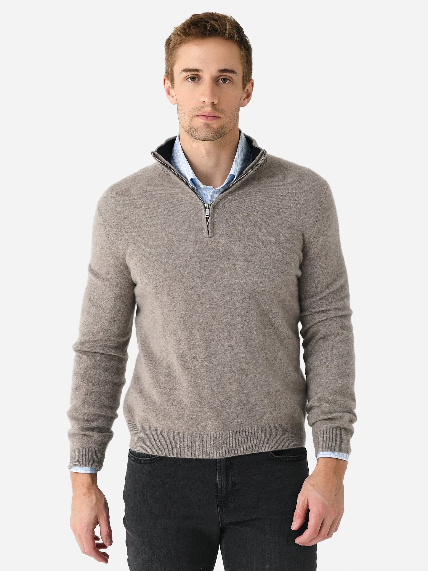 Naadam Cashmere Men's Contrast Collar Quarter-Zip