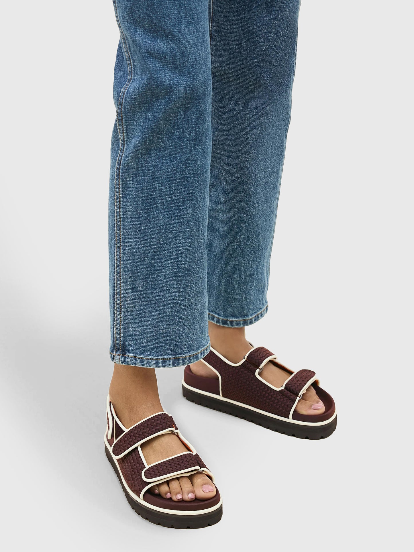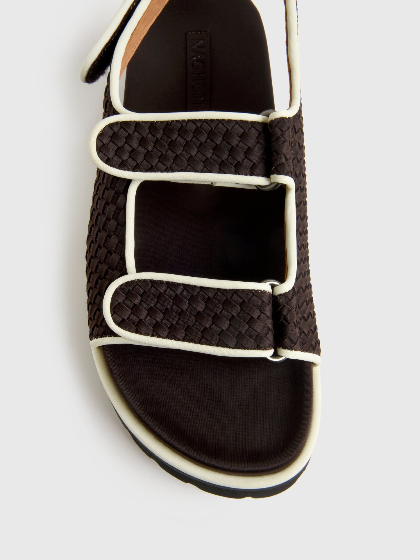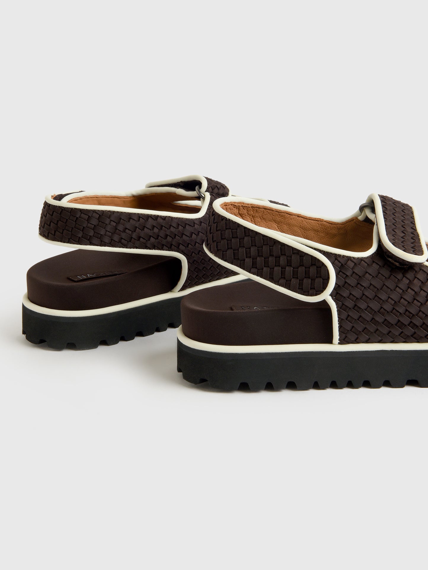 This sporty sandal features an elevated design made from handwoven neoprene with contrast piping.